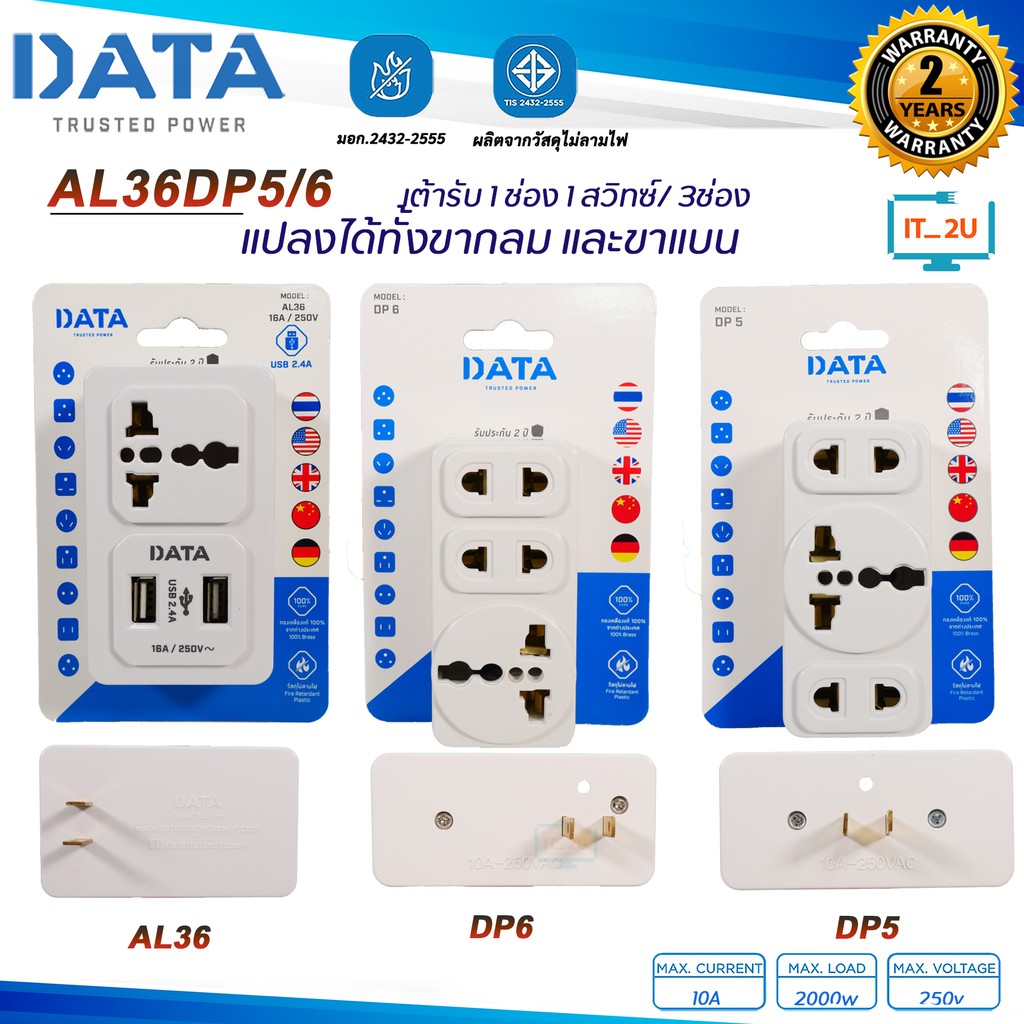 Plug DATA DP4/DP5/DP6/DP2/DP1/AL36 เต้ารับ 1 ช่อง 1 สวิทซ์/ 2 ช่อง 1 สวิทซ์/เต้ารับ3ช่อง