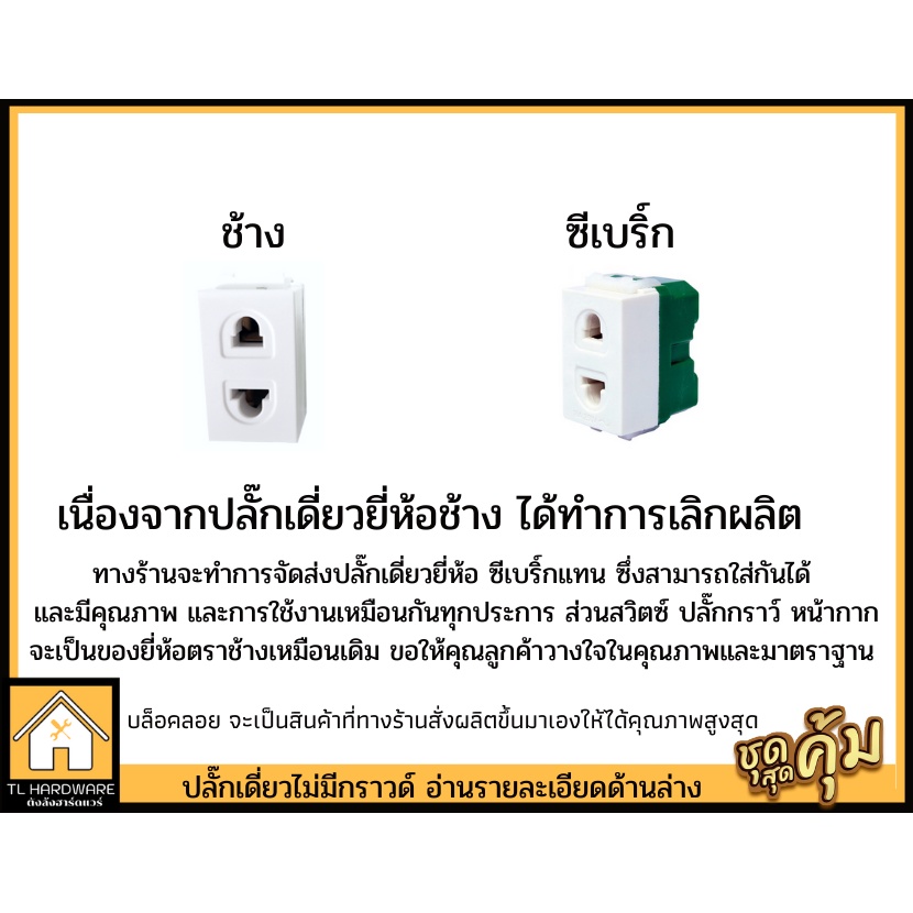 [เกิน99 ส่งฟรี!!30บาท] Chang เต้ารับปลั๊กไฟ ชุดปลั๊กกราวน์คู่ ปลั๊กเดี่ยว สวิตซ์ เต้ารับ ตราช้าง(พร้อมบล็อคลอย ปุ๊กสกรู)