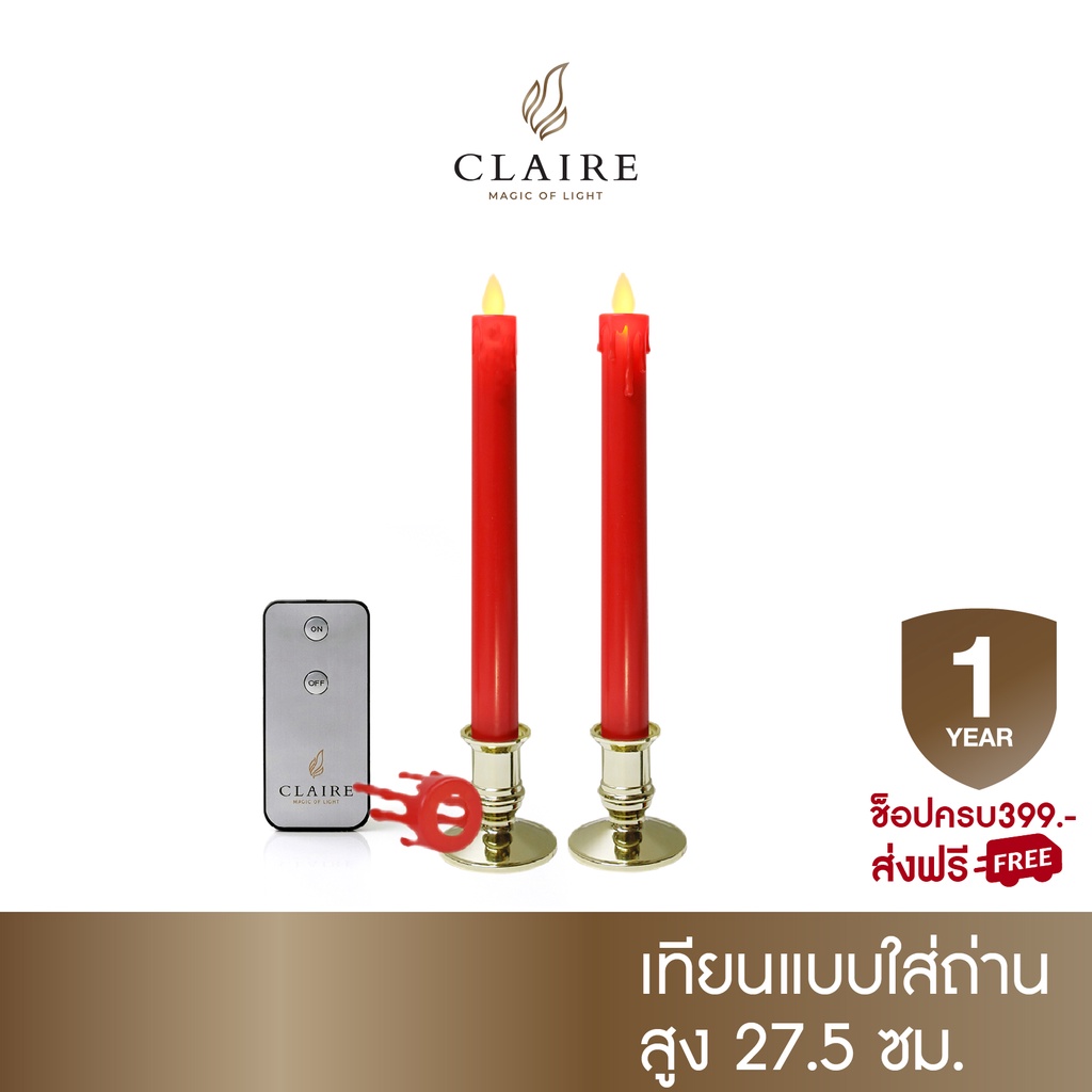 แคร์ล เชิงเทียนไฟฟ้า LED สูง27.5ซม น้ำตาเทียนถอดได้ พลาสติก แดงทอง
