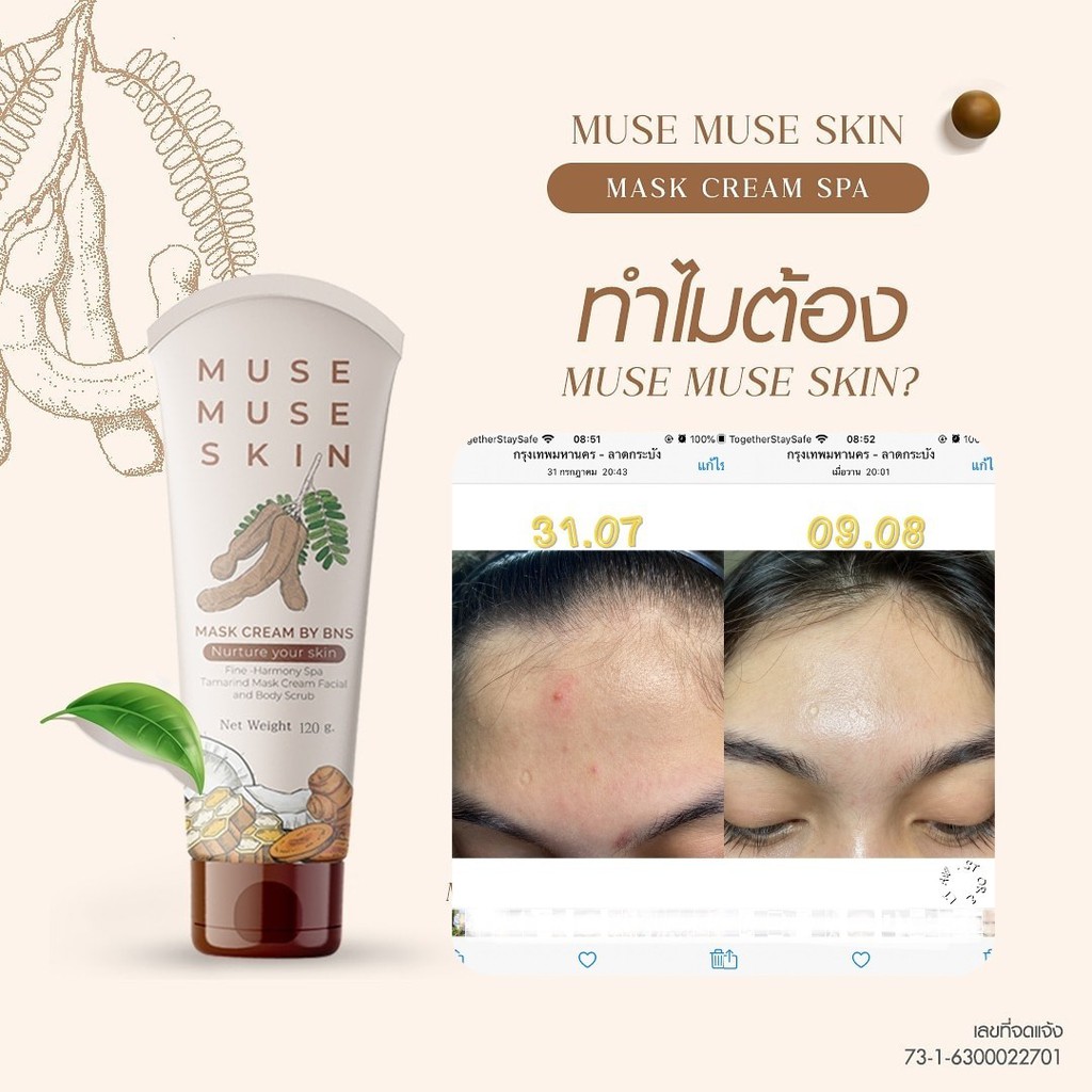 สครับมะขามออแกนิค เนื้อมาส์ก มิวส์มิวส์สกินมาส์กครีมสปา ขนาด 100g.