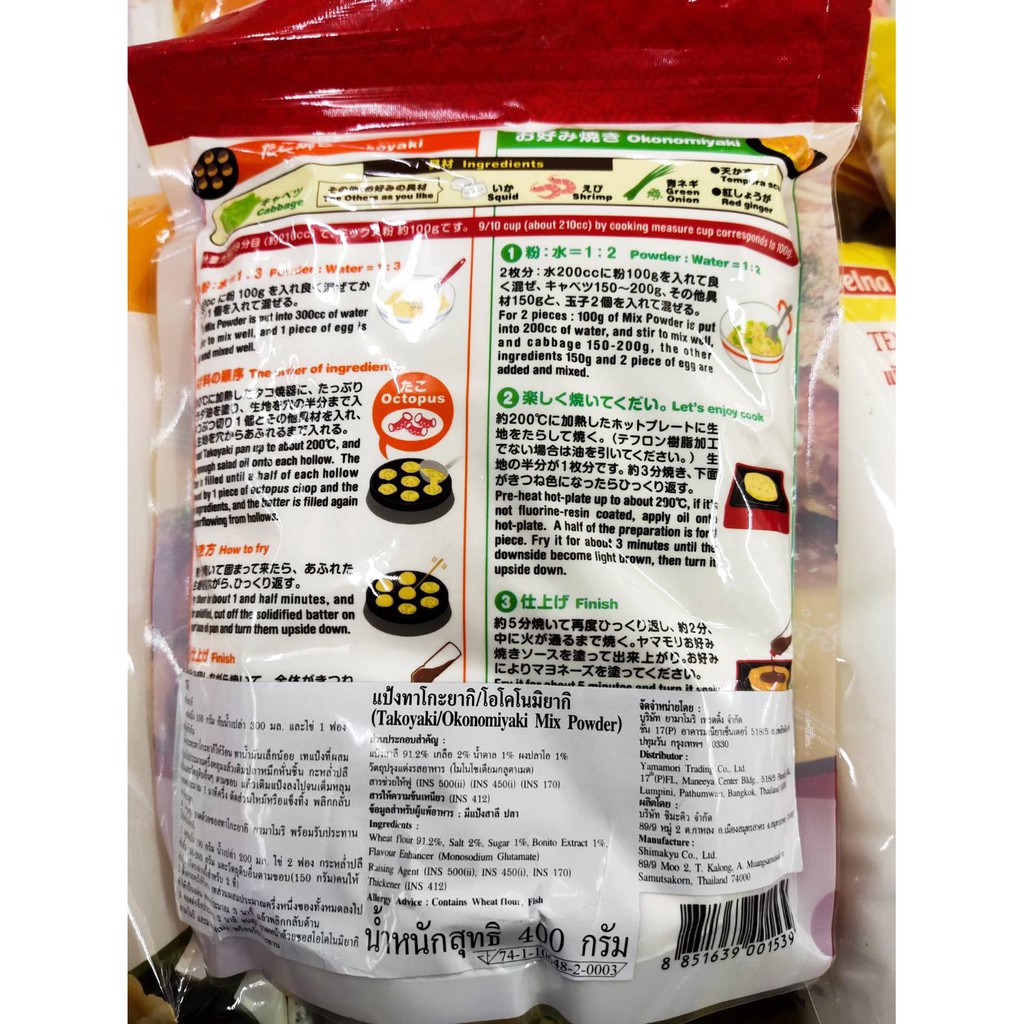 แป้งทาโกะยากิ&โอโคโนมิยากิ 400 กรัม ตรา ยามาโมริ TAKOYAKI/OKONOMIYAKI MIX POWDER 400G YAMAMORI BRAND