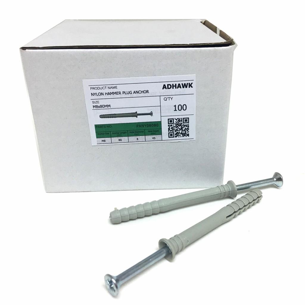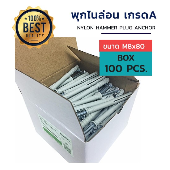 พุกไนล่อน พร้อมสกรู ขนาดM8x80mm. เกรดA จำนวน 100ตัว (1 กล่อง)