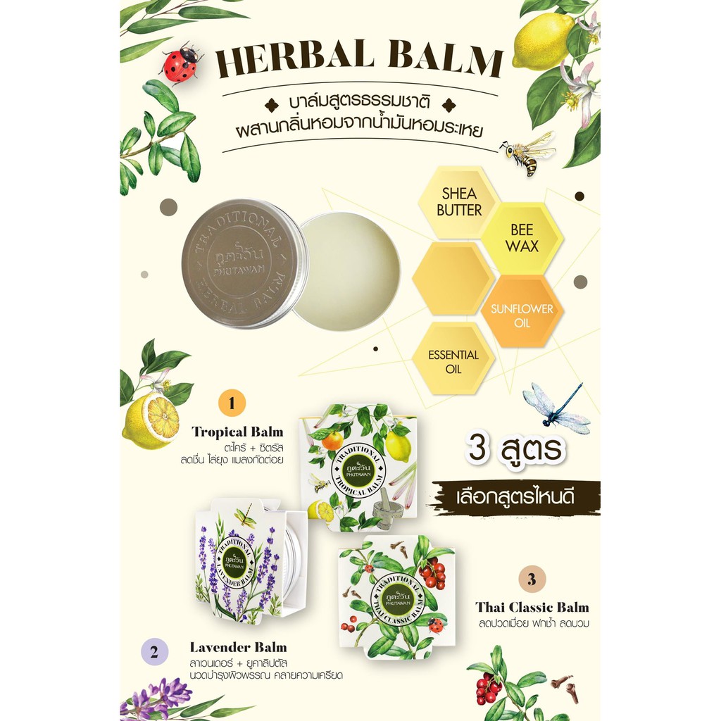บาล์มอโรมาติก ภูตะวัน มี3สูตรAromatic Balm Lavender / Classic / Tropical ยาหม่อง ออแกนิค แก้ผื่นคัน ปวดบวม ผ่อนคลาย