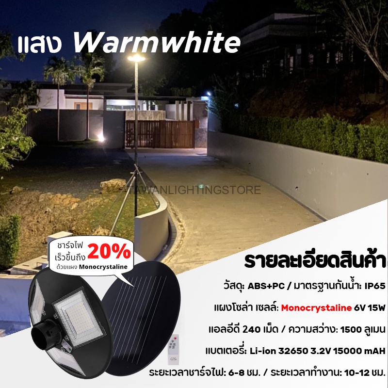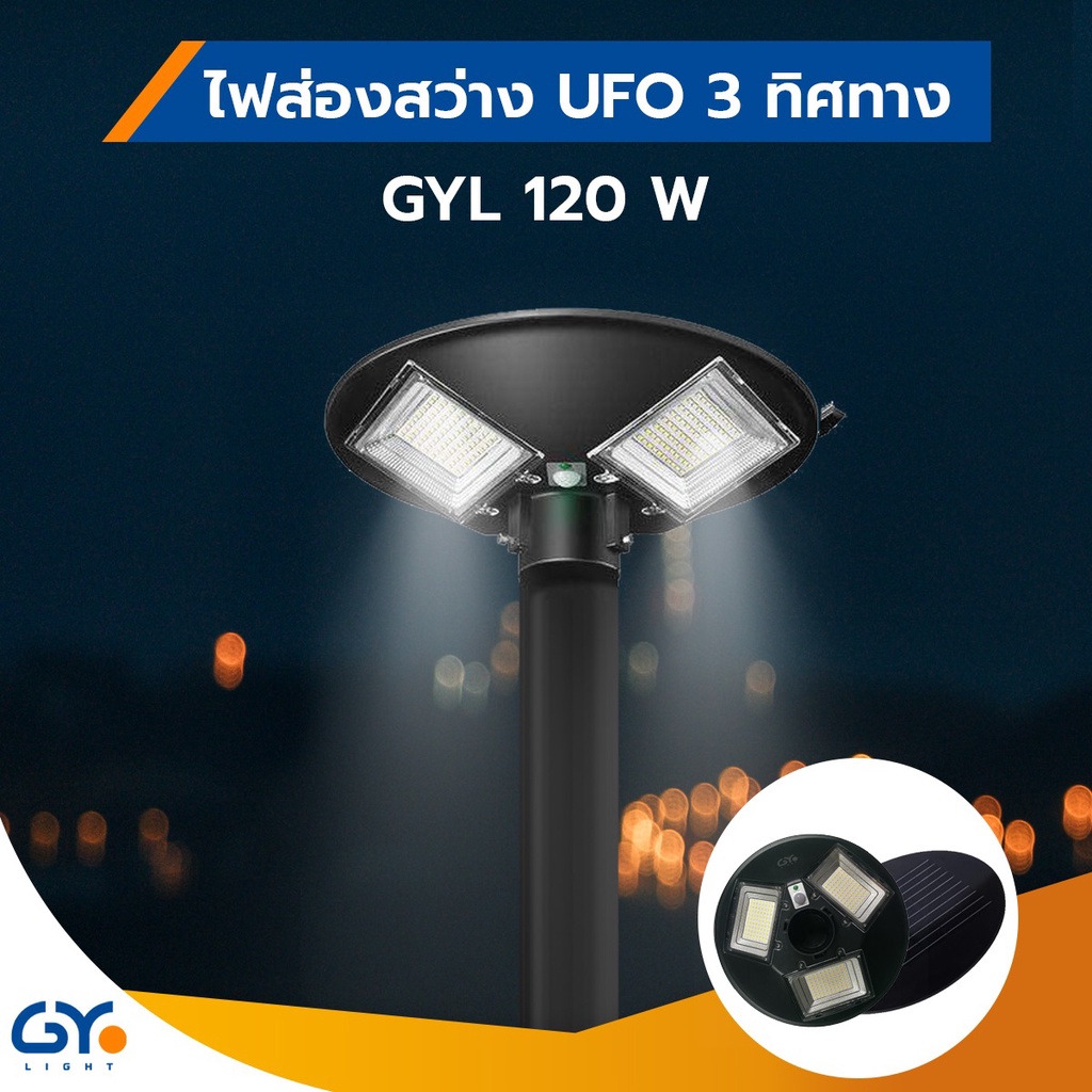 [ชาร์จไฟเร็วกว่า] GYlight โคมไฟสนามโซล่าเซลล์ไฟ 3 ทิศทาง 240แอลอีดี UFO แผงMono แสงขาว Daylight