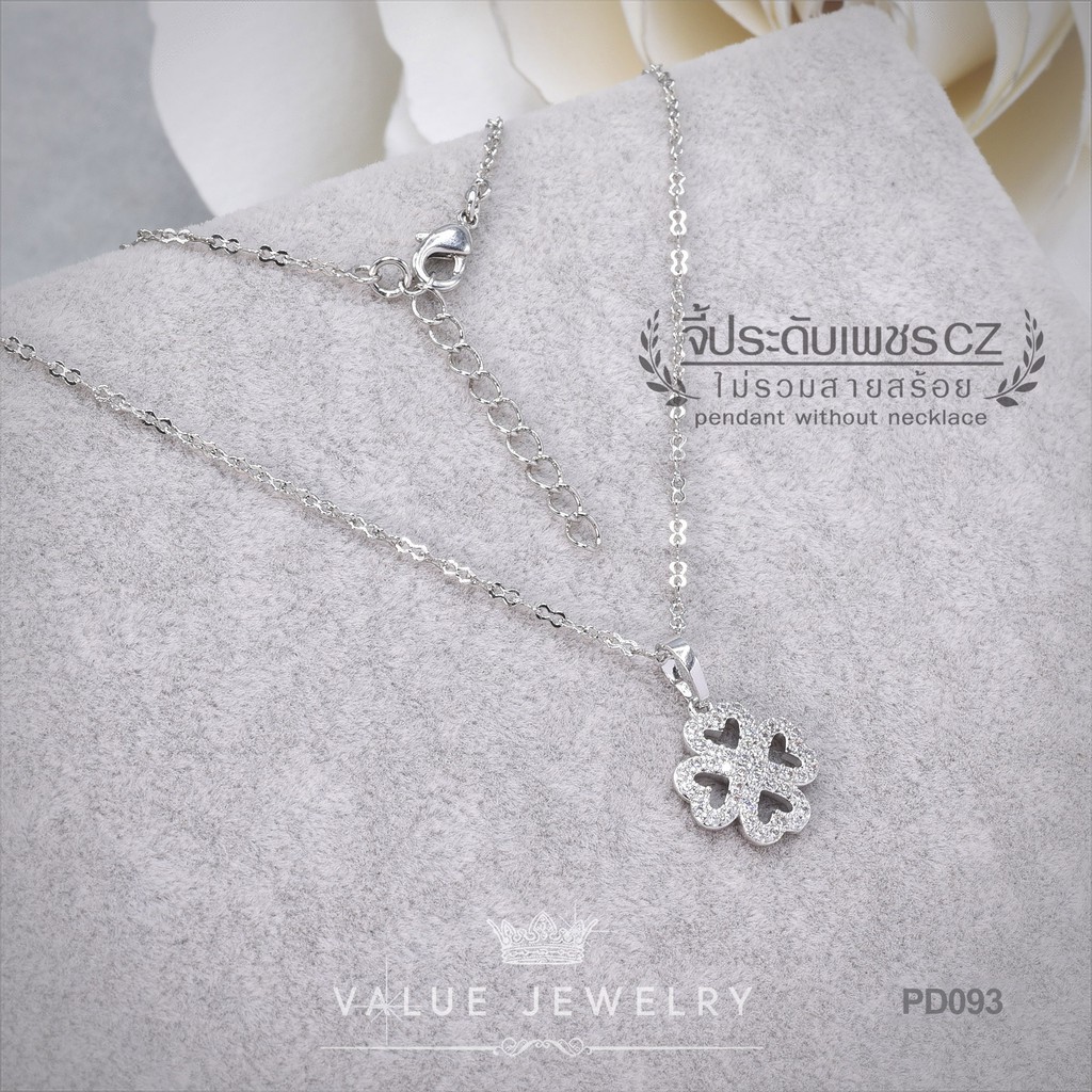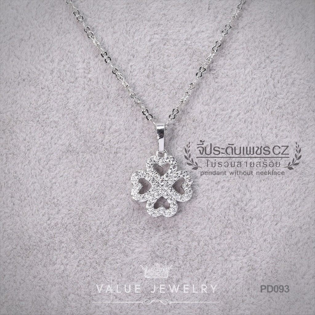 จี้สร้อยคอ ประดับคริสตัล ลายใบไม้นำโชค Clover ขนาดกลาง เครื่องประดับ สร้อย PD093 ValueJewelry