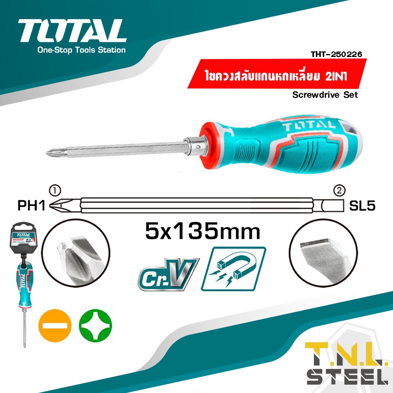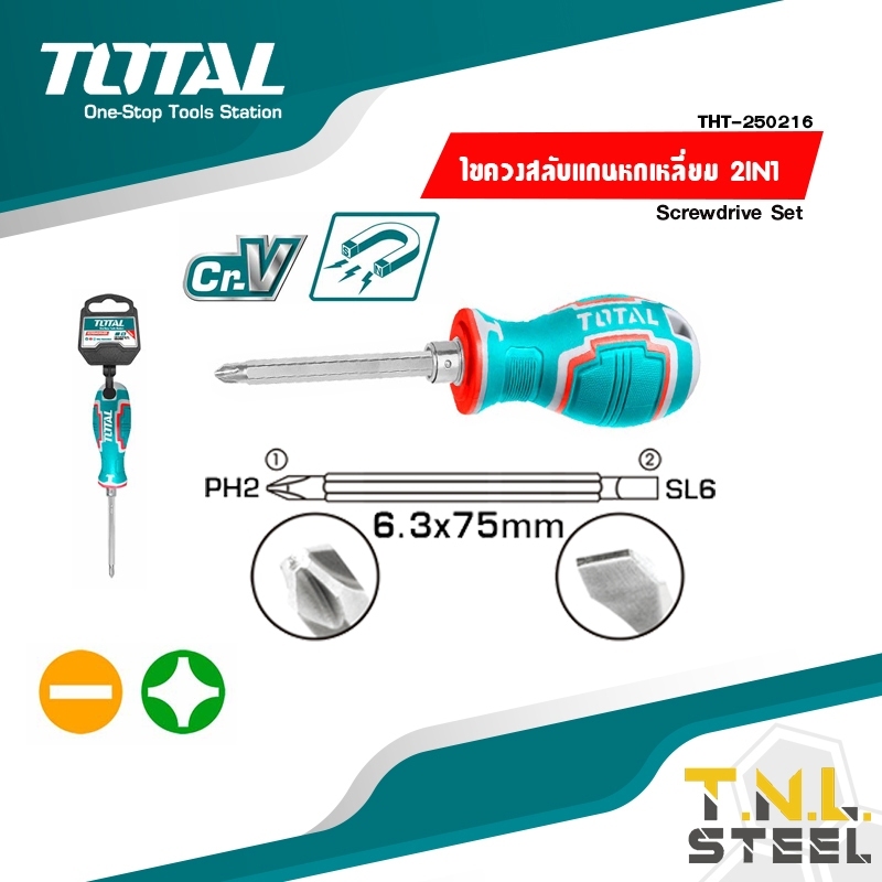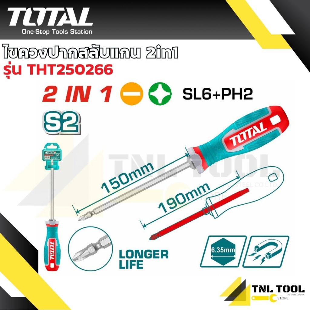 ไขควงสลับ ปลายแม่เหล็ก (ปากแบน - ปากแฉก) TOTAL ( THT250216 / THT250226/ THT250206 / THT250266 ) ไขควงสลับแกนหกเหลี่ยม