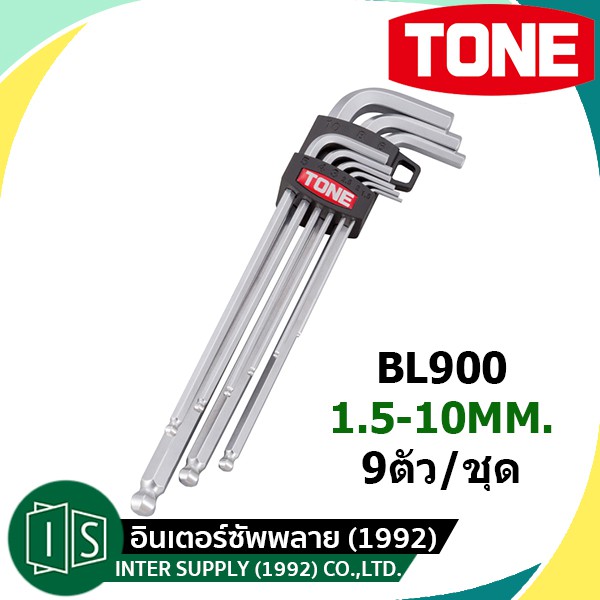 TONE BL900 ชุดประแจแอลหกเหลี่ยม หัวบอล ขาวยาว 9 ตัว/ชุด 1.5-10MM. โทเน่ BL-900 BL 900