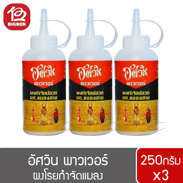 [3 ขวด] อัศวิน พาวเวอร์ ผงโรยกำจัดปลวก มด แมลงสาบ ตายยกรัง ขนาด 250 กรัม