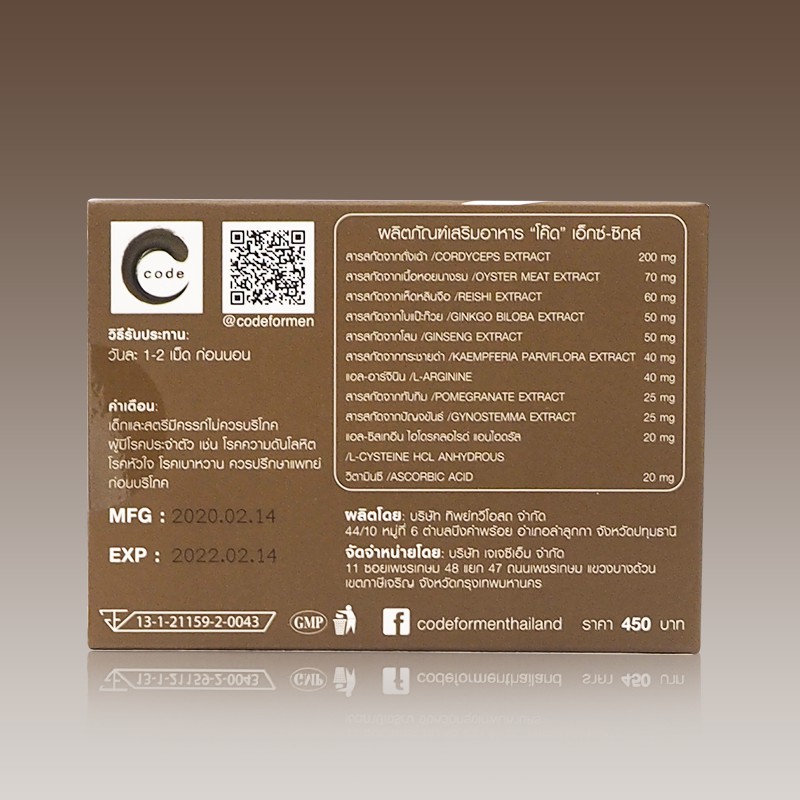 Code For Men X6 สำหรับท่านชาย ผลิตภัณฑ์เสริมอาหารถั่งเฉ้าสกัดเข้มข้น บรรจุ 1 กล่อง (6 แคปซูล)
