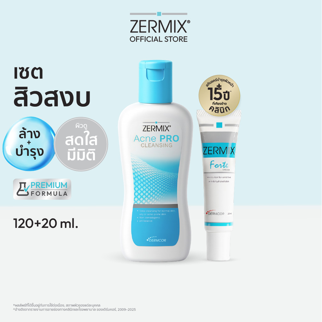 [ชุดเซตสุดคุ้ม] ZERMIX Forte Cream 20ml. และ Acne Pro Cleansing 120ml. มอยส์เจอไรเซอร์ และ โฟมล้างหน้าลดสิว คุมมัน