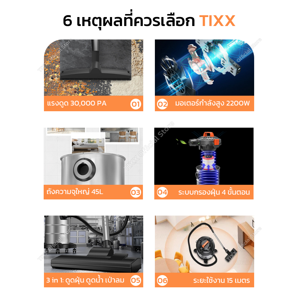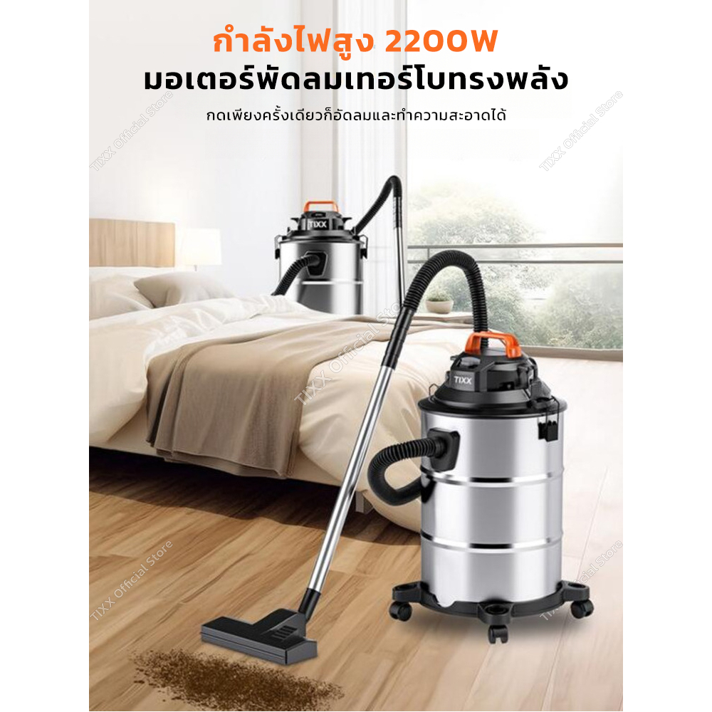 เครื่องดูดฝุ่นอุตสาหกรรม 45L 2200W เครื่องดูดฝุ่น ถังสแตนเลส wet & dry vacuum cleaner รับประกัน 10ปี