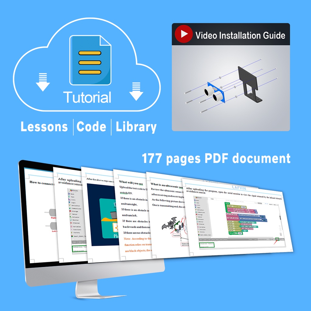 LAFVIN ชุดหุ่นยนต์มินิแทงค์ Arduino UNO R3 พร้อมคู่มือ รองรับแอป Android สำหรับเรียนรู้