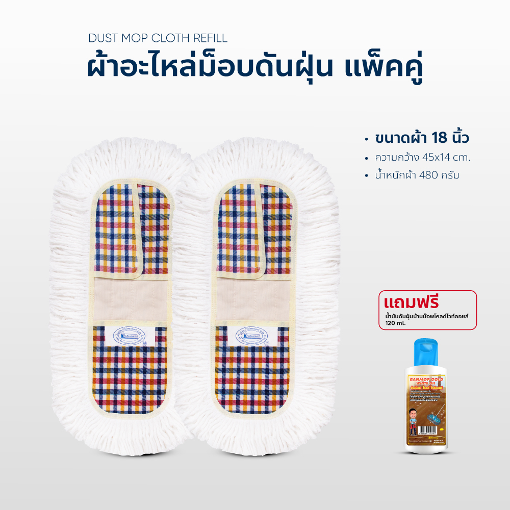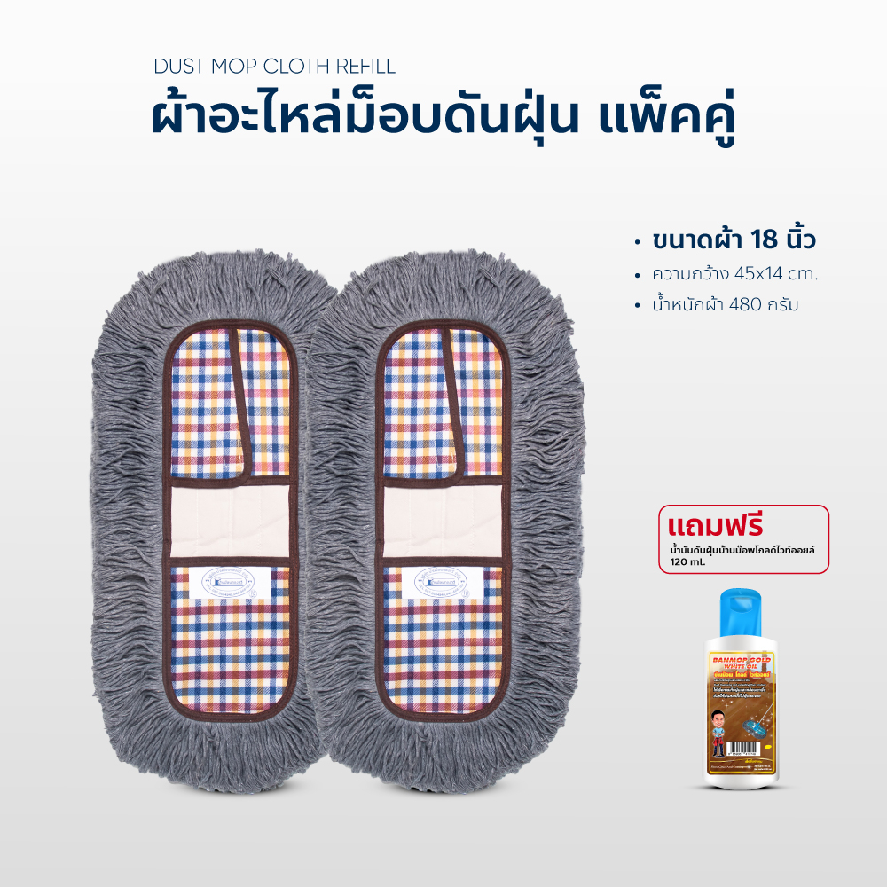 ผ้าถูพื้น ผ้าอะไหล่ ม็อบดันฝุ่น ขนาด 18 นิ้ว แพ็คคู่ แถมน้ำมันดันฝุ่น 120ml