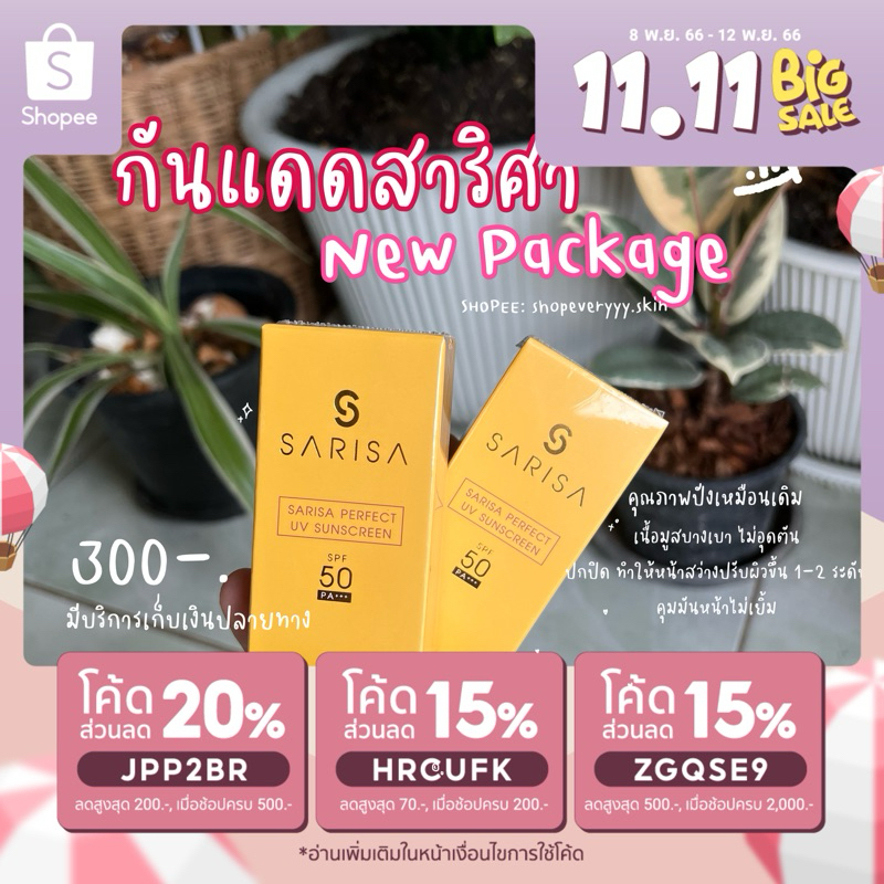 New package !! สูตรใหม่ กันแดดสาริศา กันแดดเนื้อบางเบา FPF50pa+++
