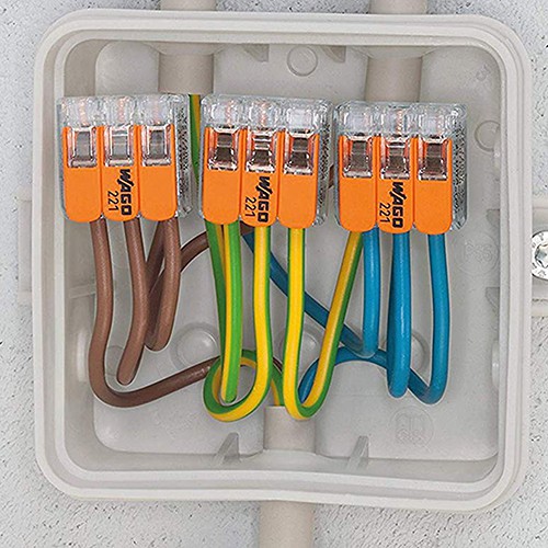 ตัวต่อสายไฟ wago ข้อต่อเชื่อมสายไฟ แบบ 3 ช่องเชื่อมต่อ - สีส้ม (50ชิ้น/1กล่อง)