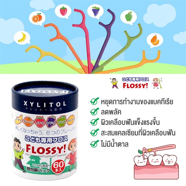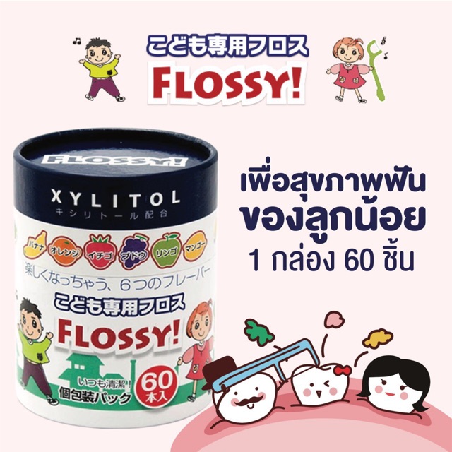 ราคาพิเศษจำนวนจำกัดFlossy Xylitol lotใหม่ล่าสุดไหมขัดฟันสำหรับเด็ก 60ชิ้น (lotปี2025)