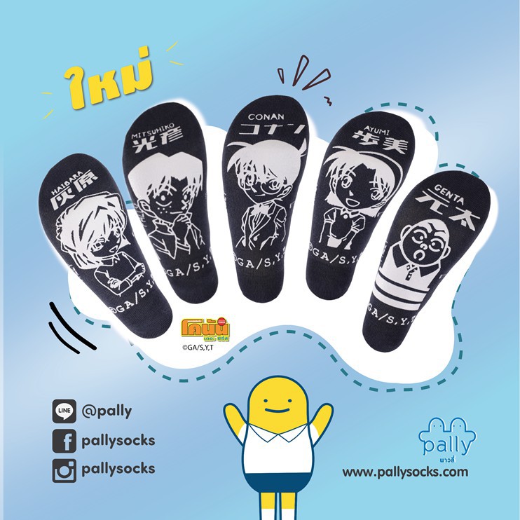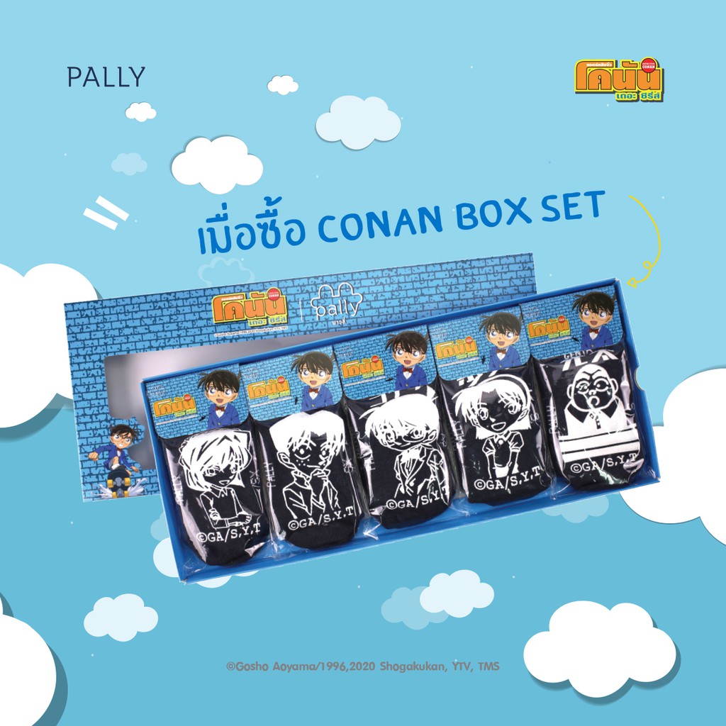 Pally ถุงเท้านักเรียนกันลื่น Box Set Conan 5 คู่ พร้อมถุงผ้าลิขสิทธิ์แท้ 1 ใบ