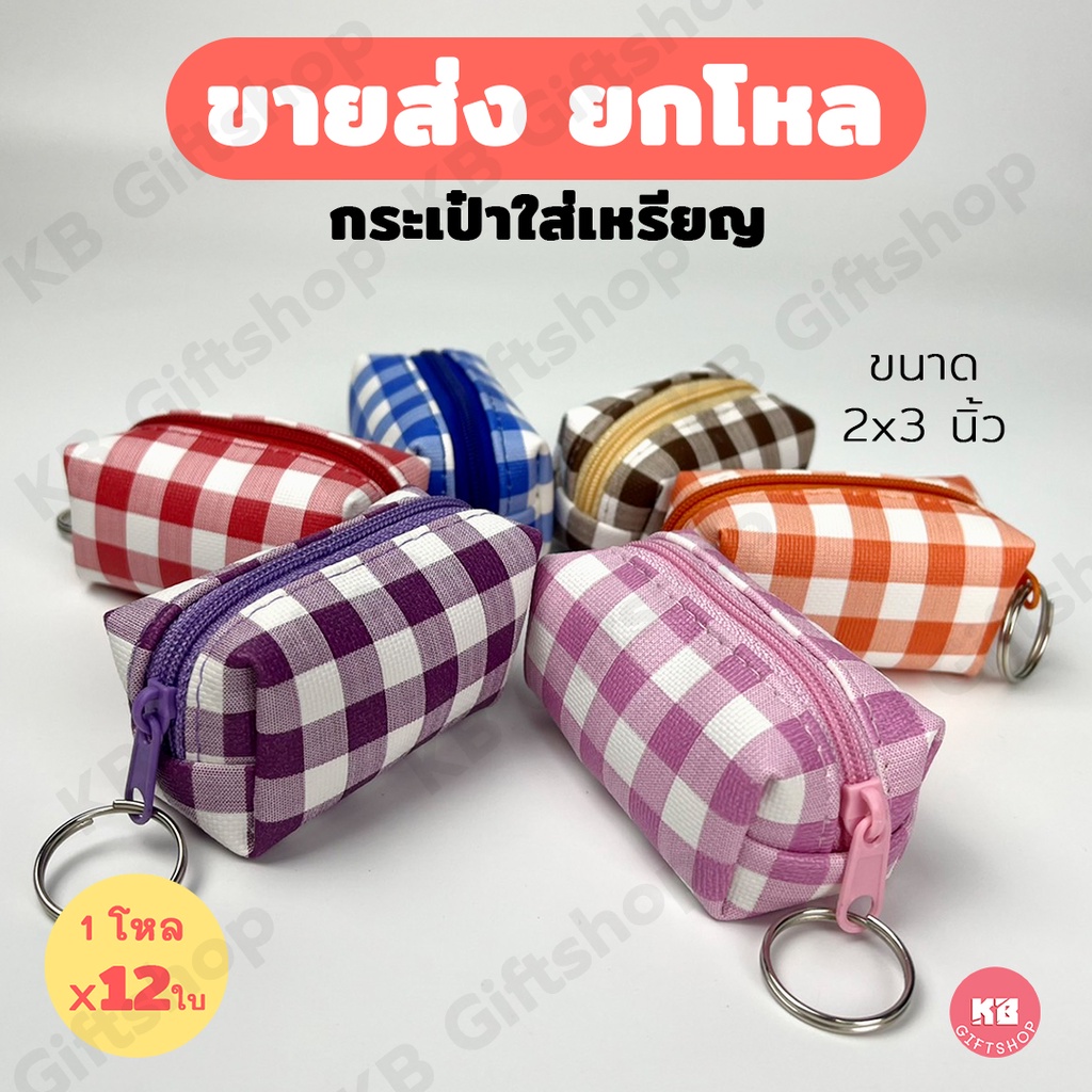 KB กระเป๋าใส่เหรียญ กระเป๋าสตางค์ ทรงลูกบอล ของชำร่วย ของแจก ขายส่งยกโหล (12ใบ) คละสี ขนาด 2x3 นิ้ว ลายสก๊อต