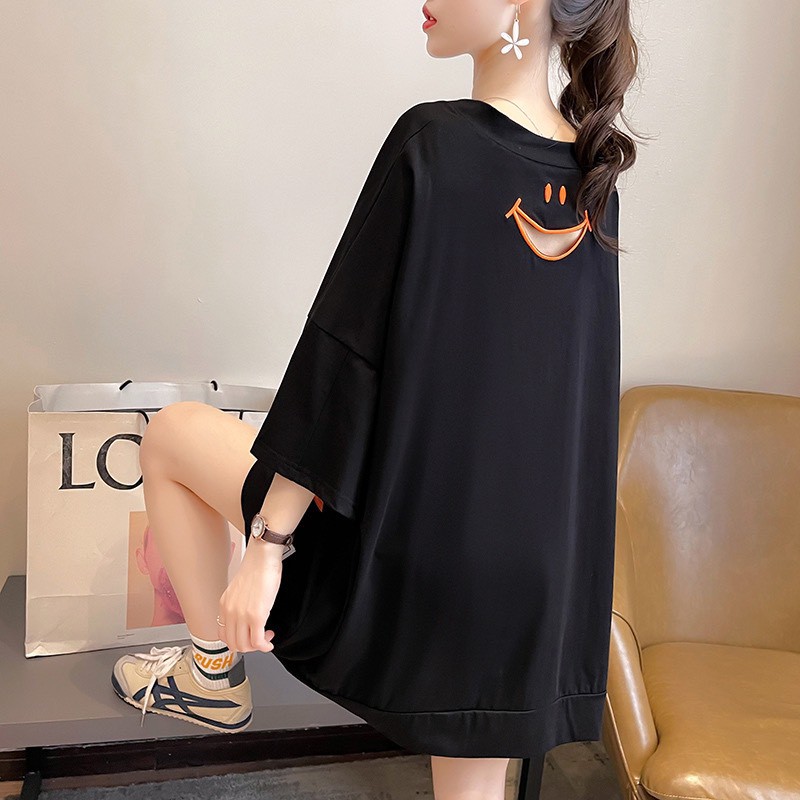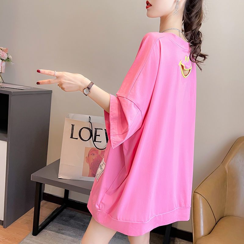 เสื้อแขนสั้นคอวี สาวอวบ Oversize (อก 54-64 นิ้ว) สีพื้น เว้าหลังยิ้ม ผ้าคอตตอล สินค้าพร้อมส่ง A17