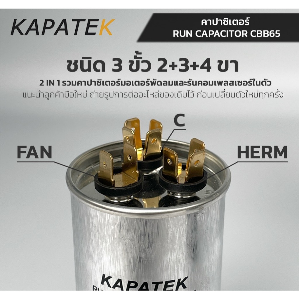 KAPATEK แคปรัน แคปรันแอร์ คาปาซิเตอร์แอร์ 40+2uF 450V 50/60Hz / Run Capacitor (CBB65) 40+2 ไมโคร