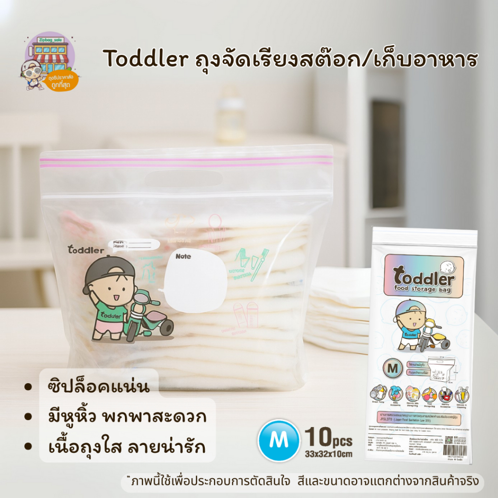 ถุงซิปจัดเรียงน้ำนม Toddler (มีก้นวางตั้งได้) ขนาด M 27×18cm พกพาง่าย ใส่อาหาร–สิ่งของ แพ็คละ 10 ใบ