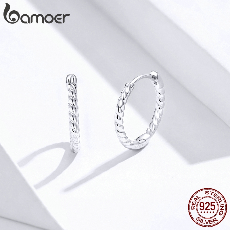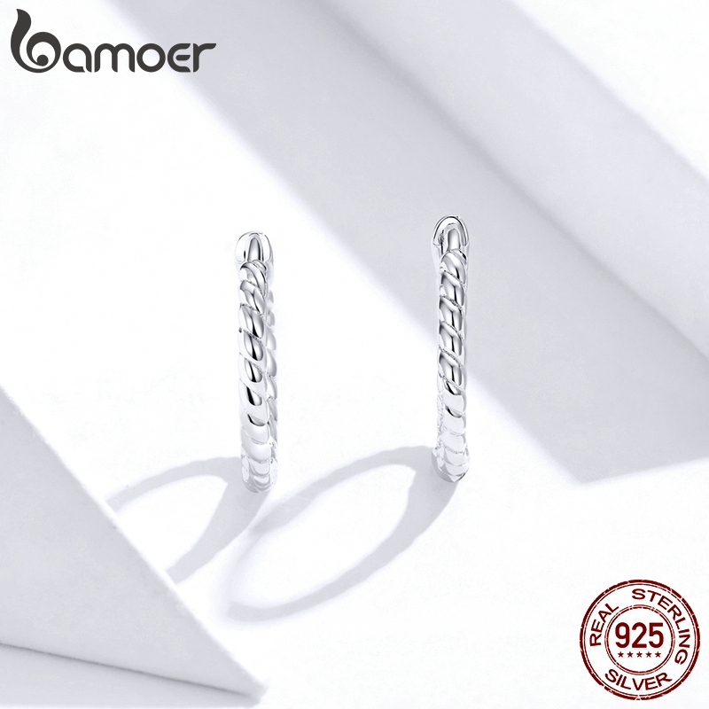 Bamoer ต่างหูเงิน 925 ทรงเรขาคณิต แบบคลิปหนีบ