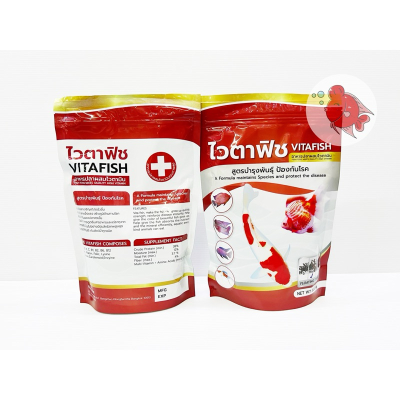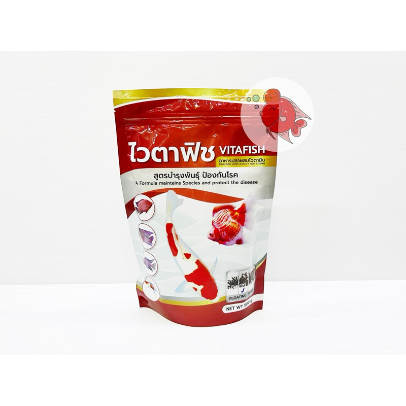 อาหารปลา ไวตาฟิช Vitafish ผสมวิตามิน สูตรบำรุงพันธุ์ มีวิตามิน ป้องกันโรค สีสันสวยงาม สุขภาพแข็งแรง ปริมาณ 500กรัม