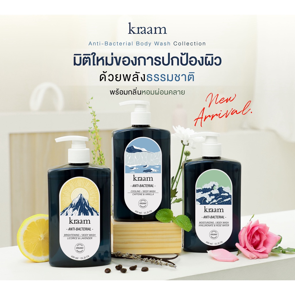 KRAAM คราม เจลอาบน้ำ สูตรผิวกระจ่างใสและลดแบคทีเรีย Anti-Bacterial Brightening Body Wash (Licorice & Lavender) (450ml)