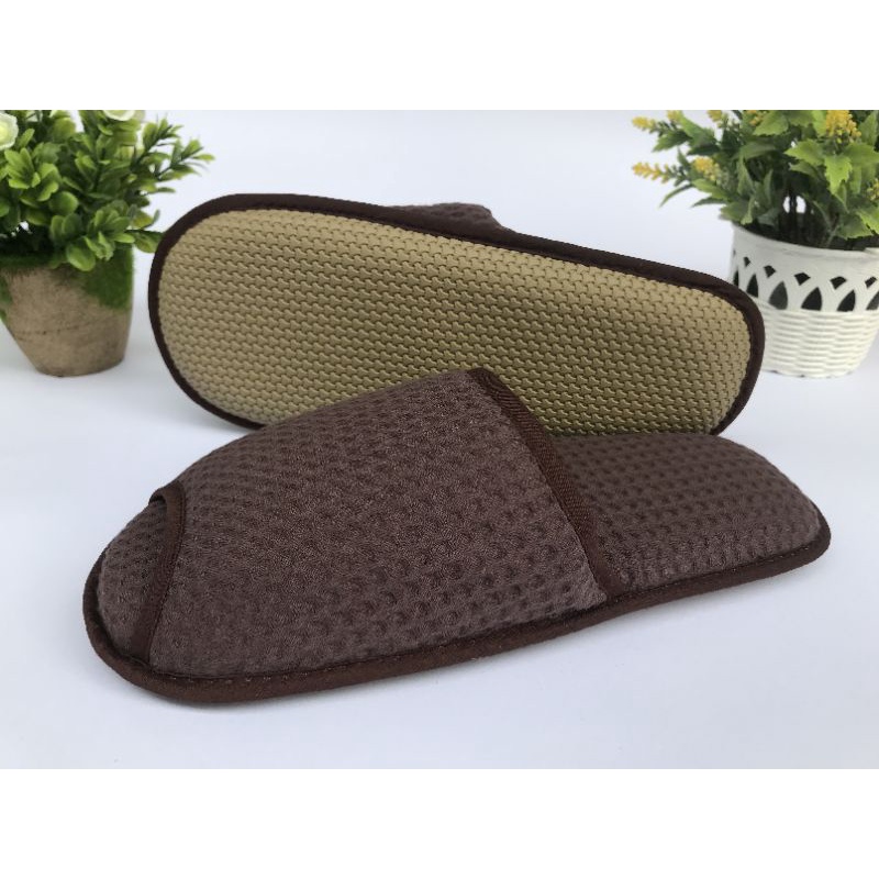 สลิปเปอร์โรงแรม รองเท้าใส่ในบ้าน รังผึ้ง สีน้ำตาลเข้ม Blue sleep