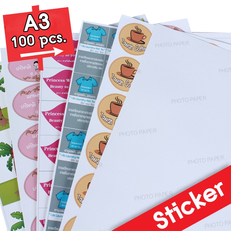 DTawan สติ๊กเกอร์ โฟโต้ อิงค์เจ็ท ผิวมัน glossy photo sticker paper A3 จำนวน 100 แผ่น 115 แกรม กันน้ำ ให้งานพิมพ์สีสวยสด