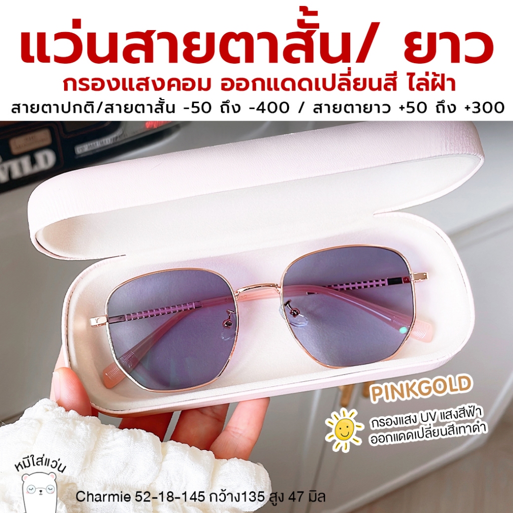 แว่นกรองแสง สายตาสั้น/สายตายาว กรองแสงสีฟ้า ออกแดดเปลี่ยนสี บลูบล็อค ออโต้ หมีใส่แว่น รุ่น Charmie