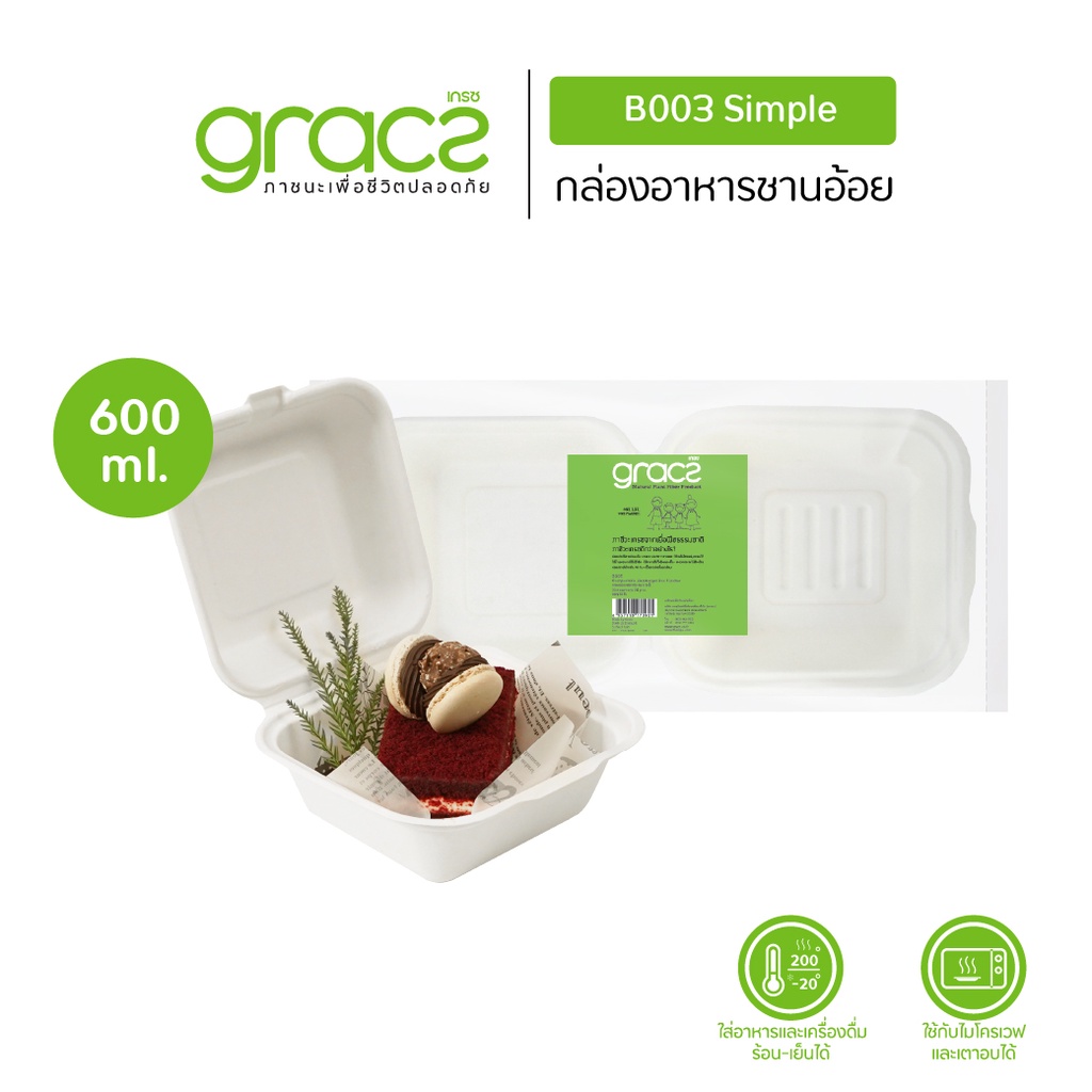 GRACZ กล่องเค้ก มินิมอล 600 ml.รุ่น B003 (แพ็ก 50 ชิ้น) (เกรซ คลาสสิค) กล่องเค้กมินิมอล เข้าเตาอบได้