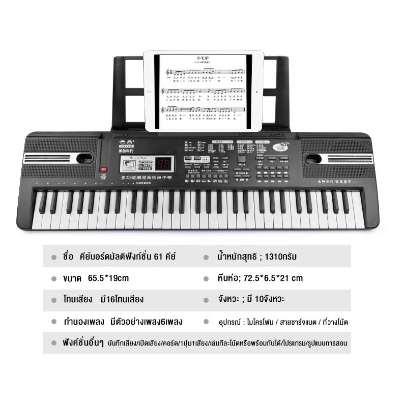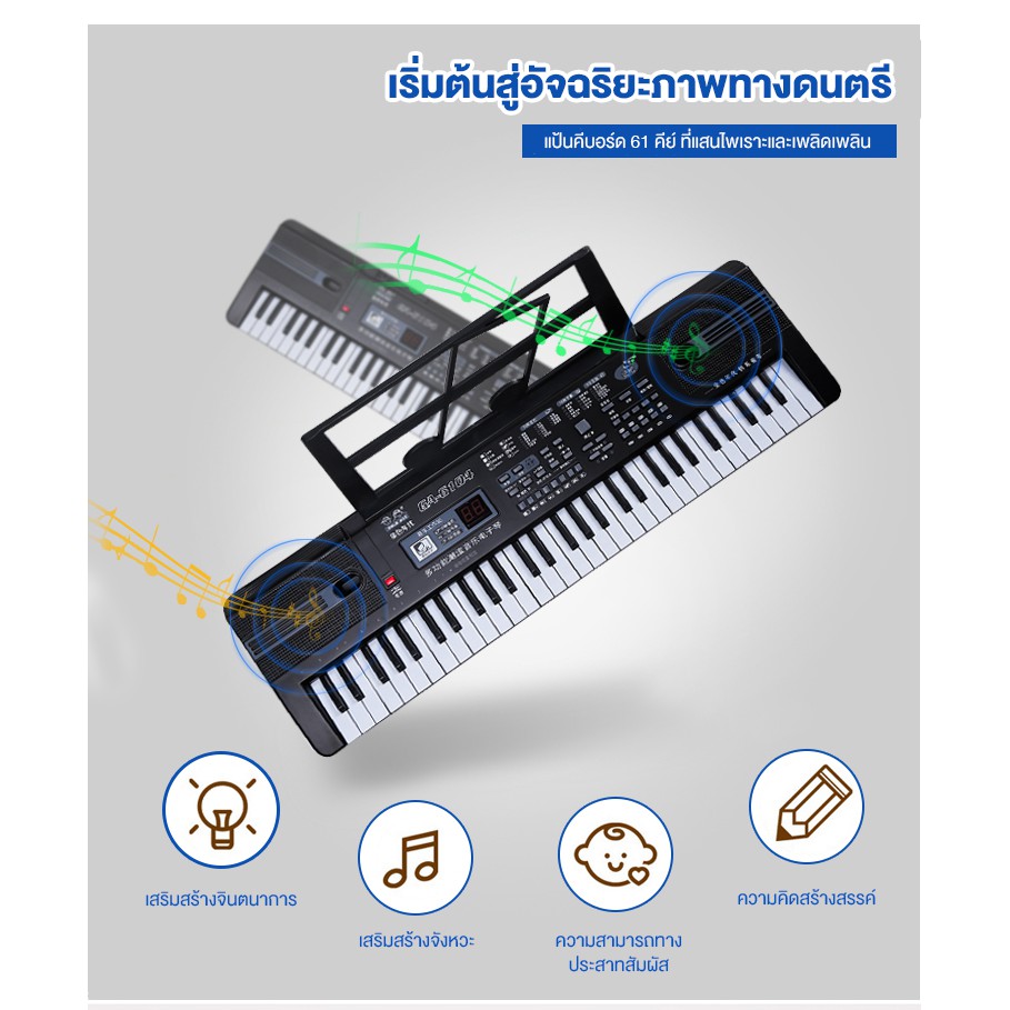 Benston คีย์บอร์ด 61 ปุ่มสำหรับเด็กเริ่มต้นใช้งาน แบบมัลติฟังก์ชั่น สอนเล่นคีย์บอร์ด แบบพกพาพร้อมไมโครโฟน