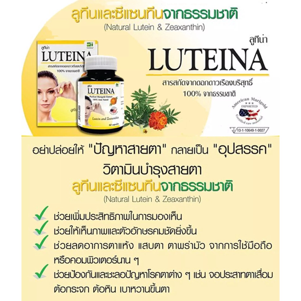 Luteina 60 capsules ลูทีน่า สารสกัดบริสุทธิ์ดอกดาวเรือง 60 แคปซูล