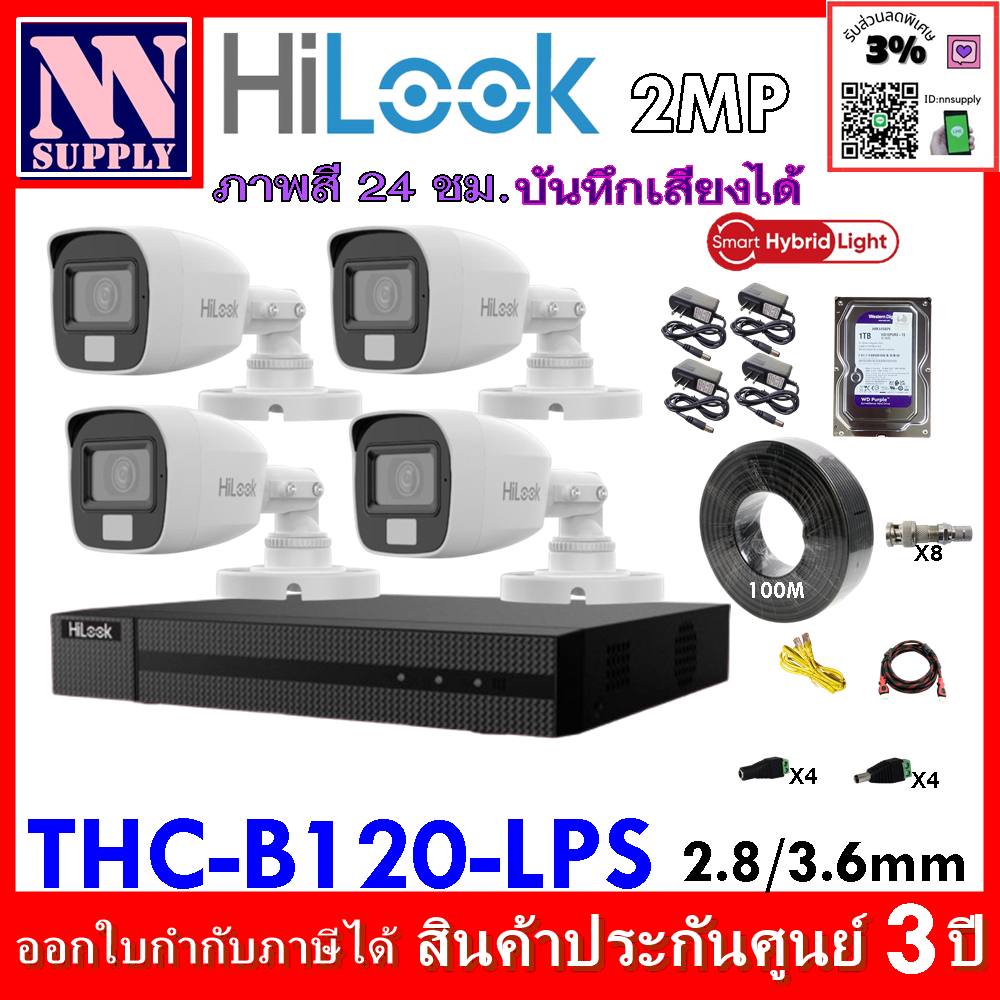ชุดกล้องวงจรปิด Hilook Smart Dual Light รุ่นTHC-B120-LPS 2MP 4 ตัว ภาพสี 24 ชม. บันทึกเสียงได้ พร้อมอุปกรณ์ติดตั้งสายRG