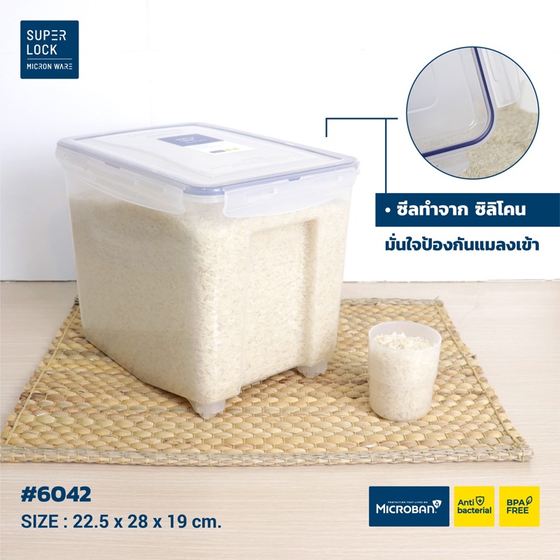 Super Lock กล่องใส่ข้าวสาร ถ้วยตวง 6042 5 กก.ล็อก 2 ชั้น เก็บกลิ่น ปราศจากสารก่อมะเร็ง BPA Free