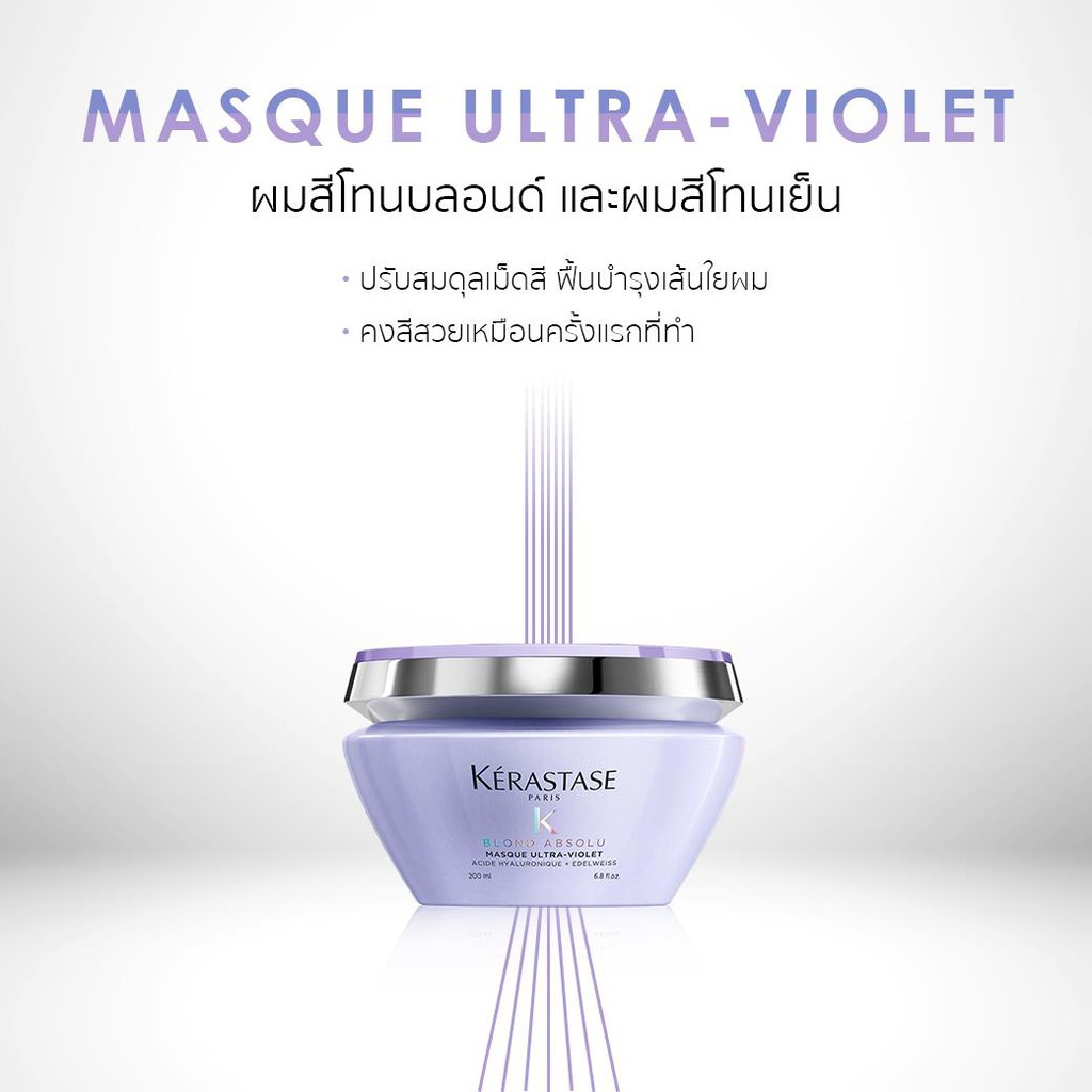 KERASTASE BLOND ABSOLU MASQUE ULTRA-VIOLET 200 ml. รักษาผมฟอกสีบลอนด์ทอง หม่นเทา ให้อยู่นานไม่ติดส้ม