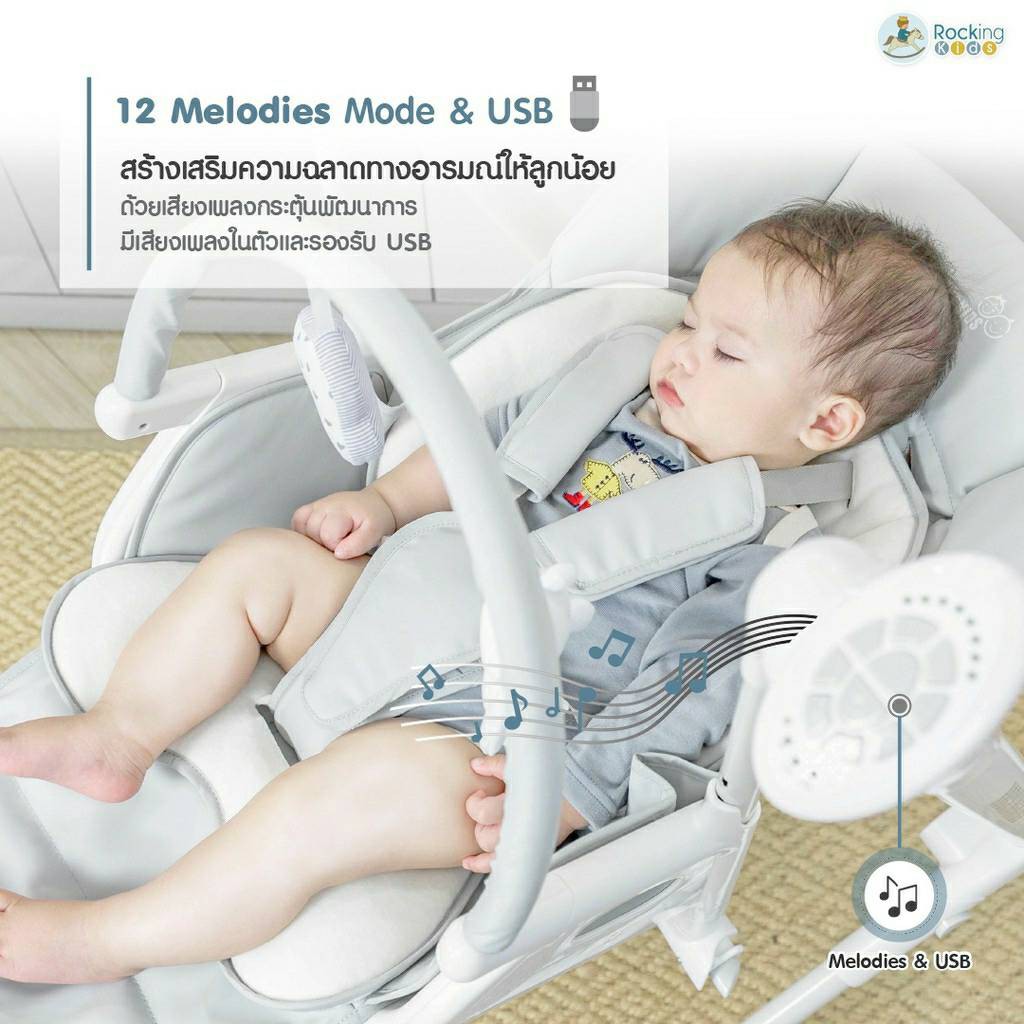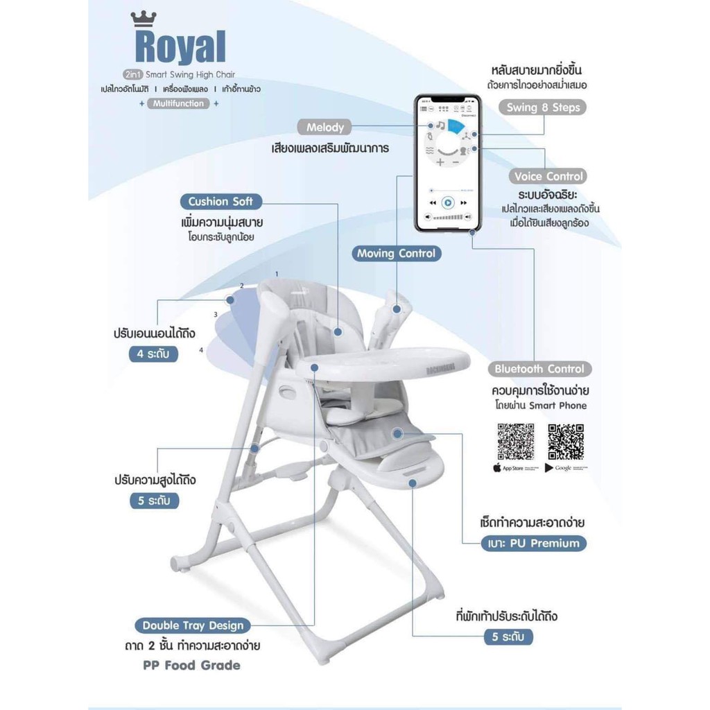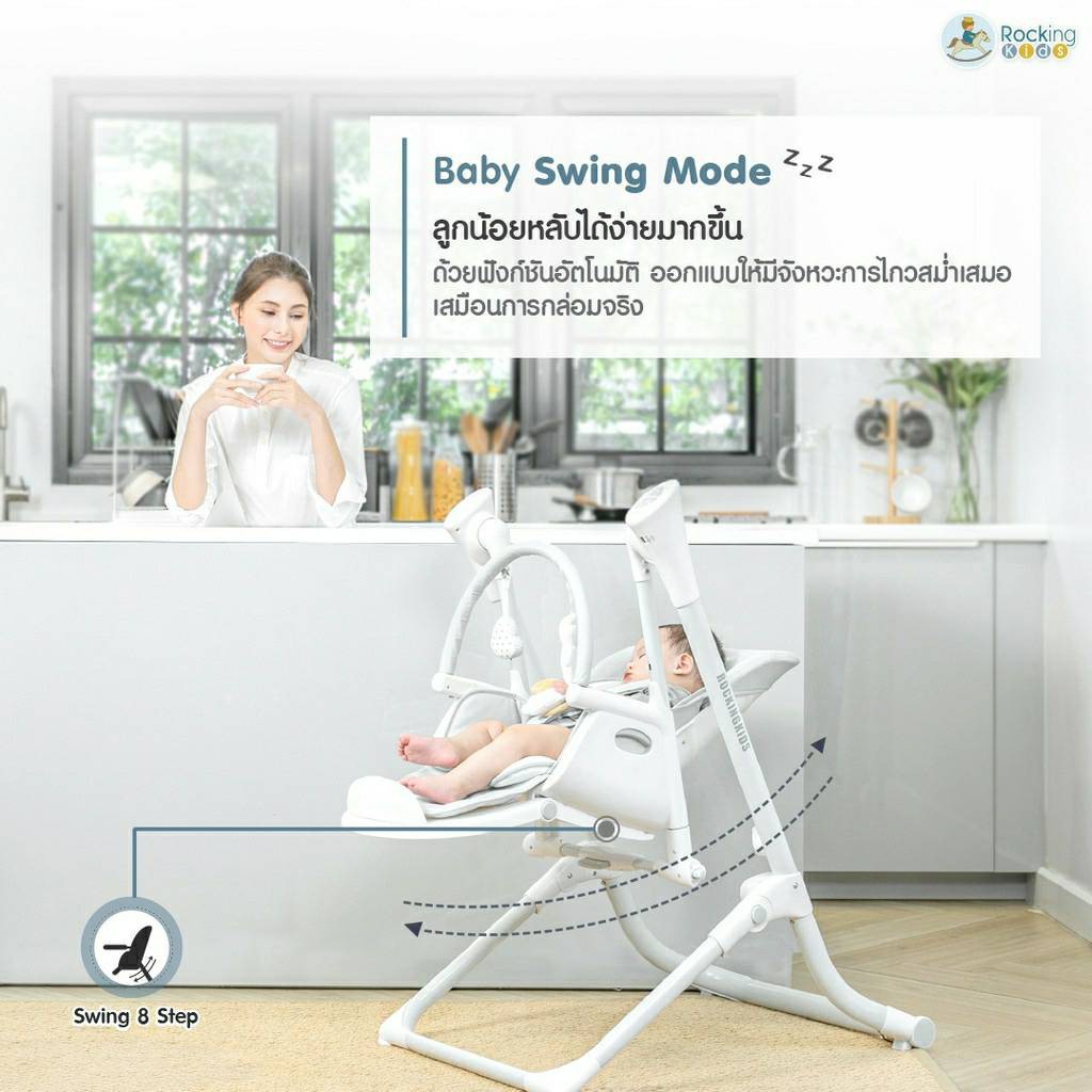 Rocking kids เก้าอี้ไฮแชร์ เปลไกวอัตโนมติ เก้าอี้ทานข้าวเด็ก Royal Smart Swing high chair 2in1