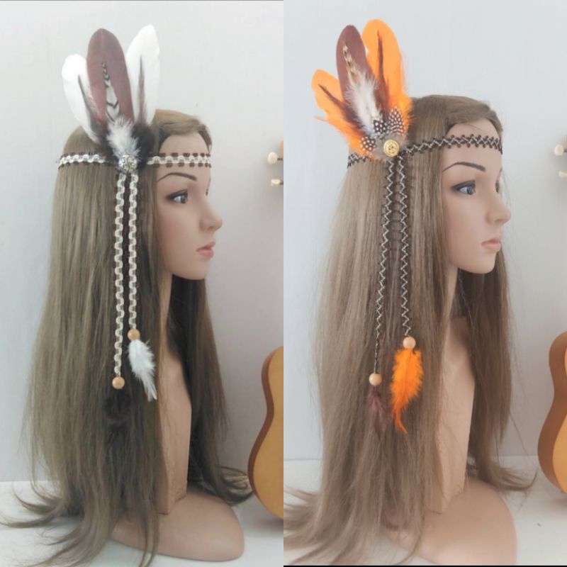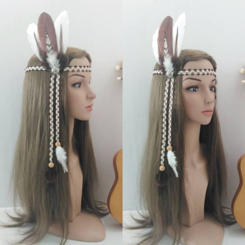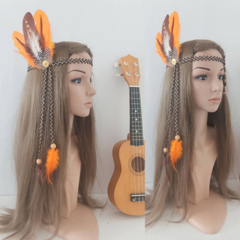 ที่คาดผมสไตล์โบฮีเมี่ยน คาดผมขนนก เชือกหยัก แต่งขนสลับสี พร้อมส่งจากไทย ร้านคนไทย