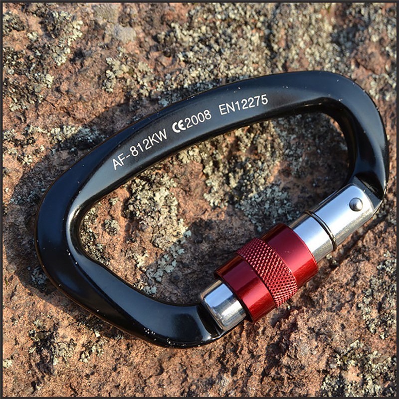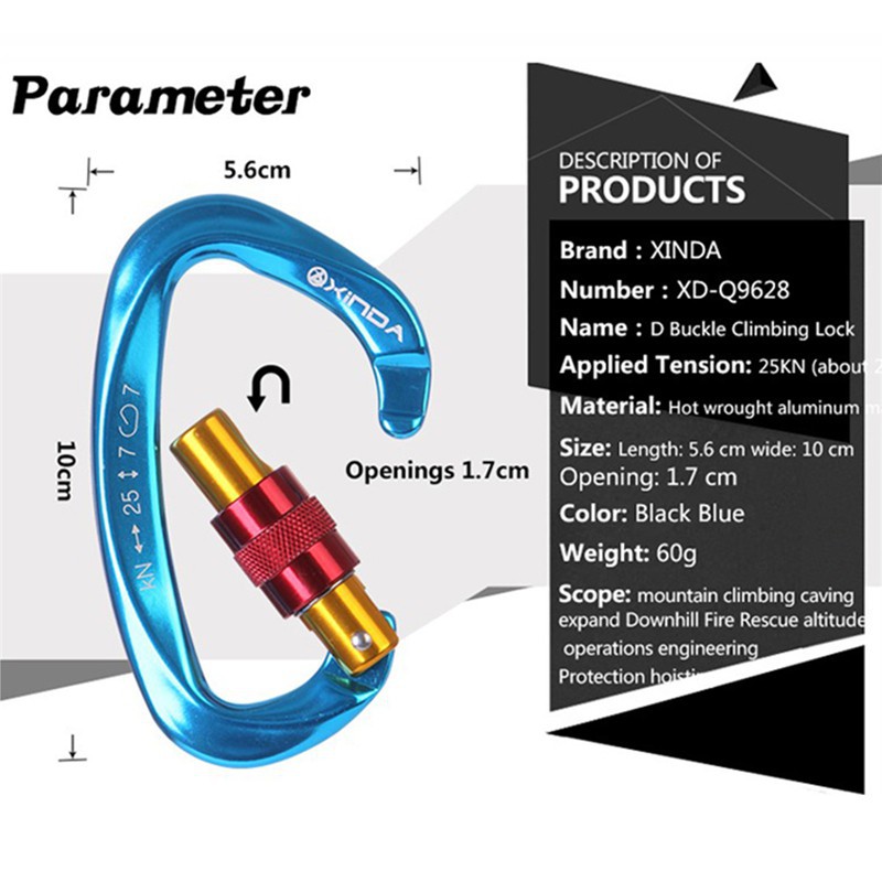 คาราบิเนอร์ Xinda รูปตัว D เกรดปีนเขา มาตรฐาน UIAA 25KN หนัก 60g แบบสกรูหมุนล็อค XD-Q9628