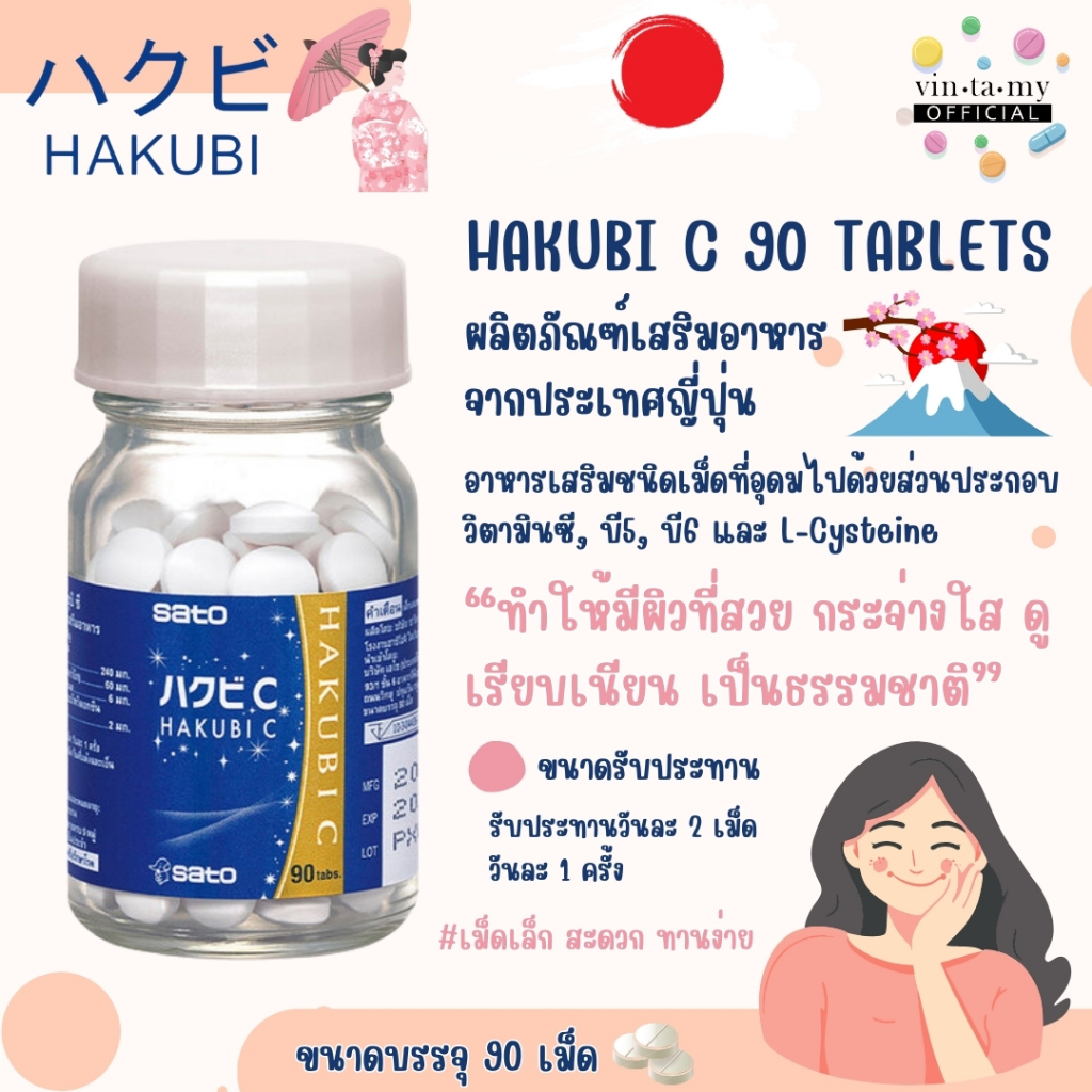 [1แถม1][ของแท้100%จากญี่ปุ่น]Sato Hakubi(ฮาขุบิ) C- ขนาด 90เม็ด แบบกิน
