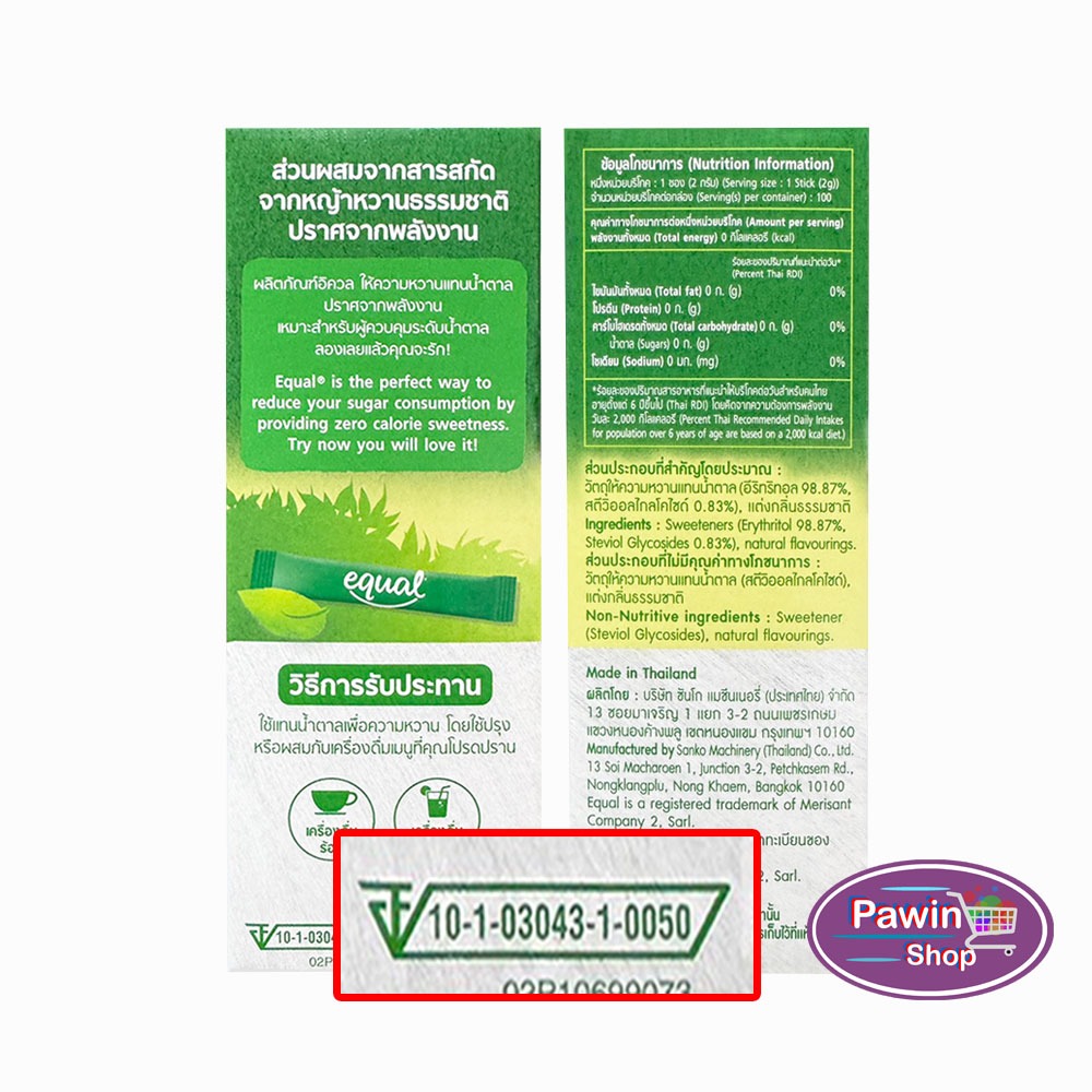 Equal Stevia 40,100 Sticks [1 กล่อง] CC 210X อิควล สตีเวีย ผลิตภัณฑ์ให้ความหวานแทนน้ำตาล 40,100 ซอง, 0 แคลอรี