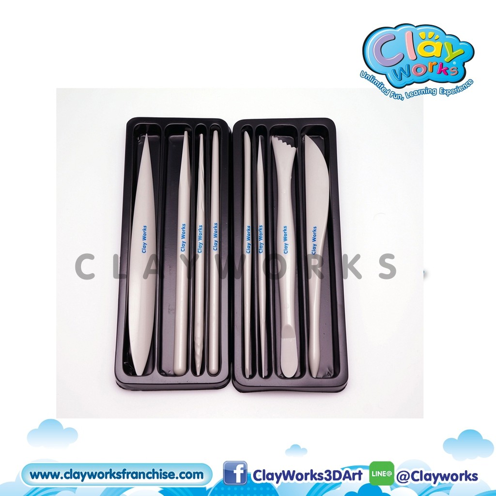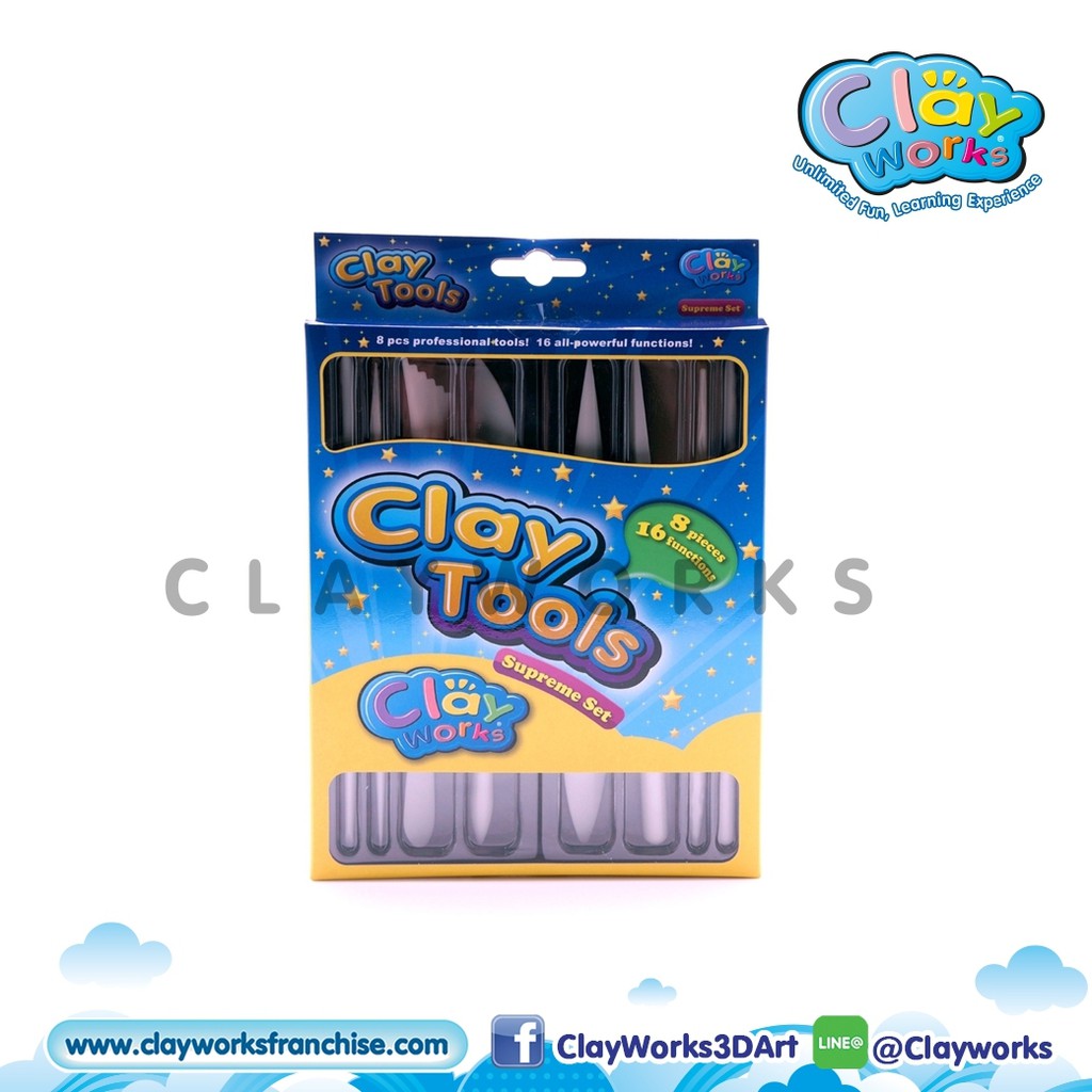 Happy Starter P-008 By Clayworks:ชุดดินเบา 8สี+ชุดเครื่องมือ 8ชิ้น ดินเบา ดินปั้น เครื่องมือปั้นดิน ตุ๊กตาดินปั้น DIY