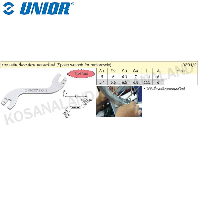 Unior ประแจขัน ซี่ลวดรถมอเตอร์ไซด์ ขนาด 5 นิ้ว , 5.4 นิ้ว (Spoke wrench for motorcycle) รุ่น 3301/2