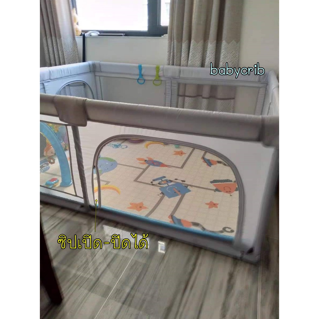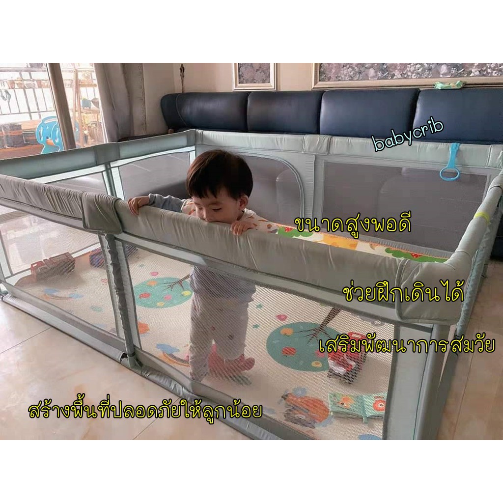 ร้านคนไทย คอกกั้นเด็กรุ่นSafezone (เพิ่มเบาะรองคลานได้) แถมผ้าอ้อมเด็ก แท้ กั้นกระแทกรอบด้าน ผ้าตาข่ายหนาระบายอากาศดี
