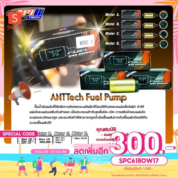 APITech ปั๊มติกรถมอเตอร์ไซค์+ไส้กรอง Fuel Pump +Filter Pump ANTTech รูปแบบ A,B,C,D,E,F,G,H