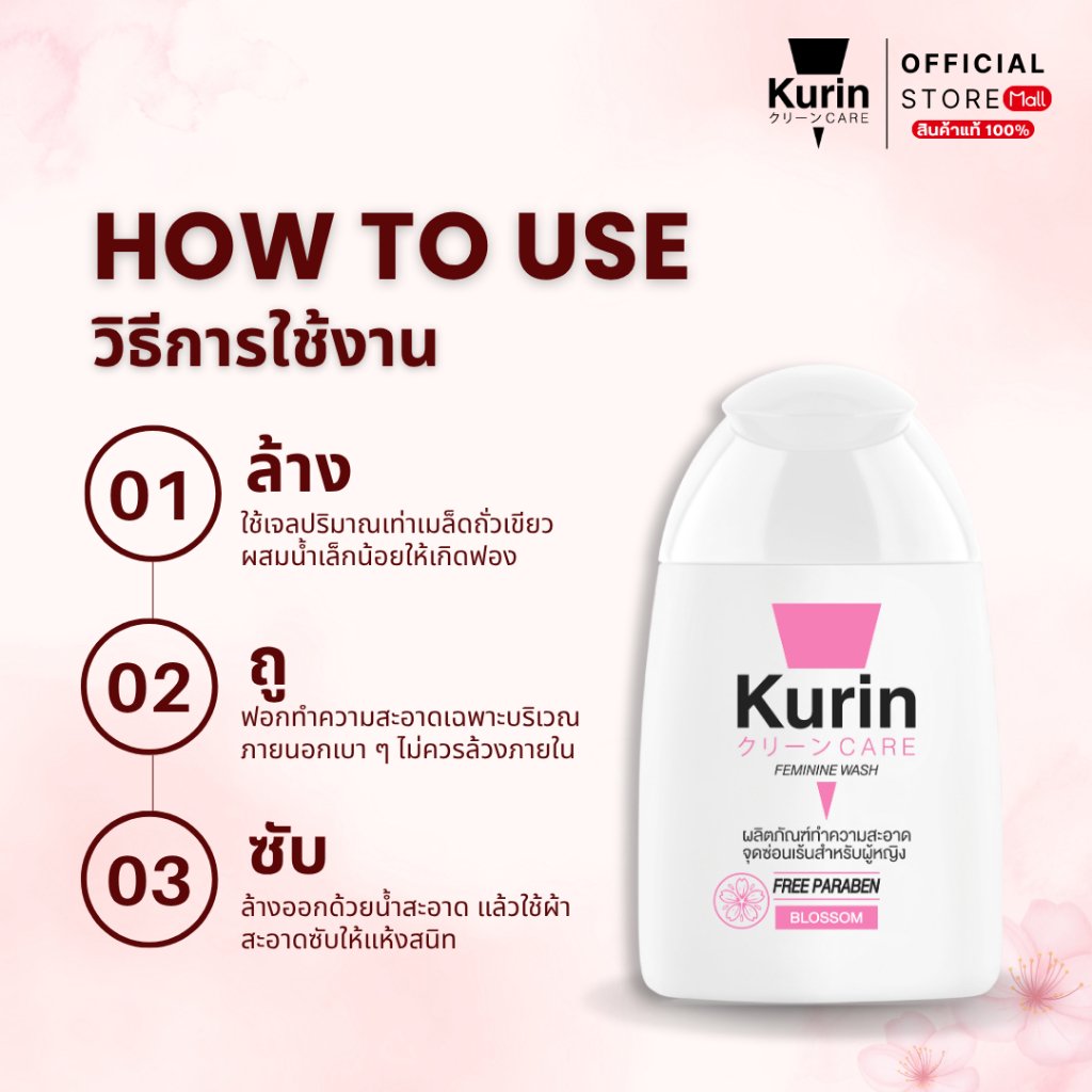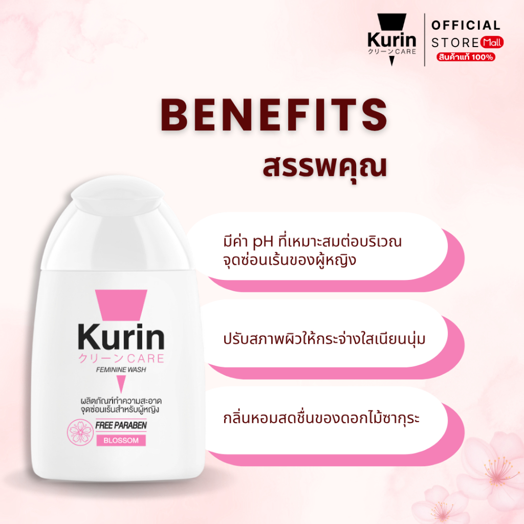 [ แพ็คคู่ 2 ขวด ] Kurin care feminine wash ph3.8 เจลทำความสะอาดจุดซ่อนเร้นสำหรับผู้หญิง สูตรบลอสซั่ม