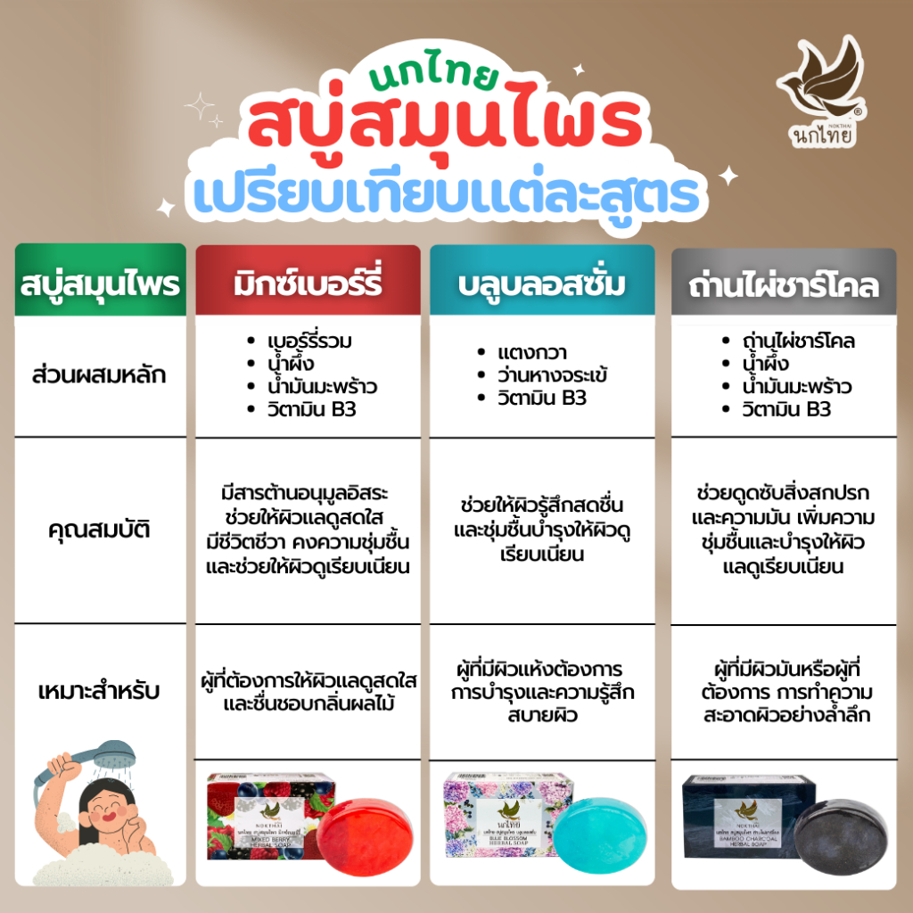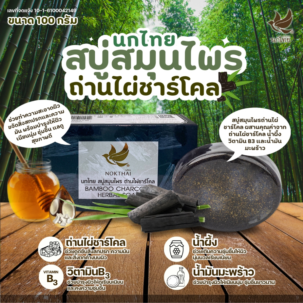 นกไทย สบู่ถ่านไผ่ชาร์โคล 100 กรัม (แถมฟรี ยาสีฟันขนาด 8 กรัม 2 หลอด)