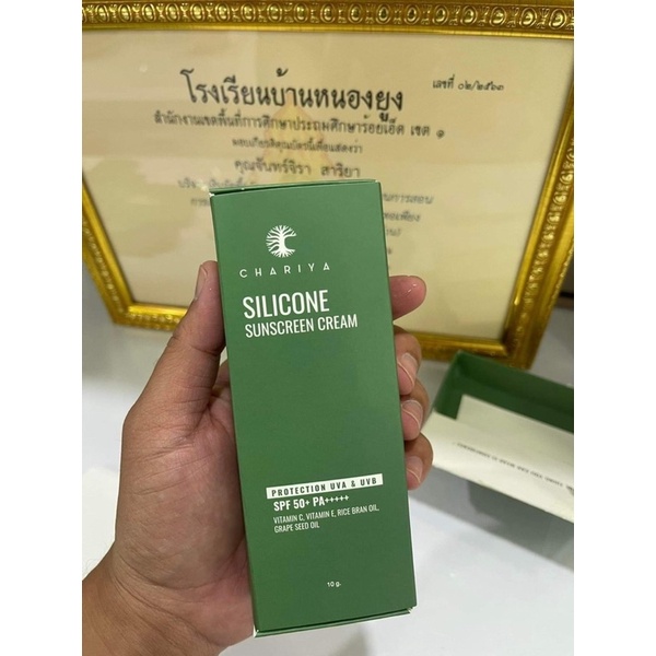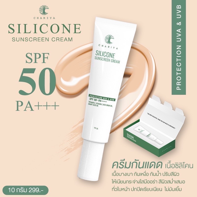 (แพคเก็จส้มนะคะ)ของแท้ + ส่งไว Silicon Sunscreen Cream 🔥ซื้อครบ 2,000/บิล แถมกระจกชาแนล🔥 ครีมกันแดดชาริยา ขนาด 10 กรัม