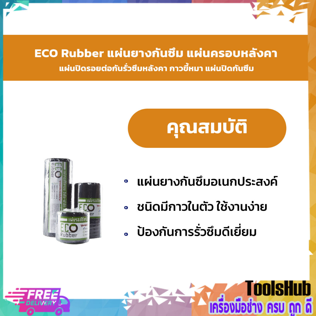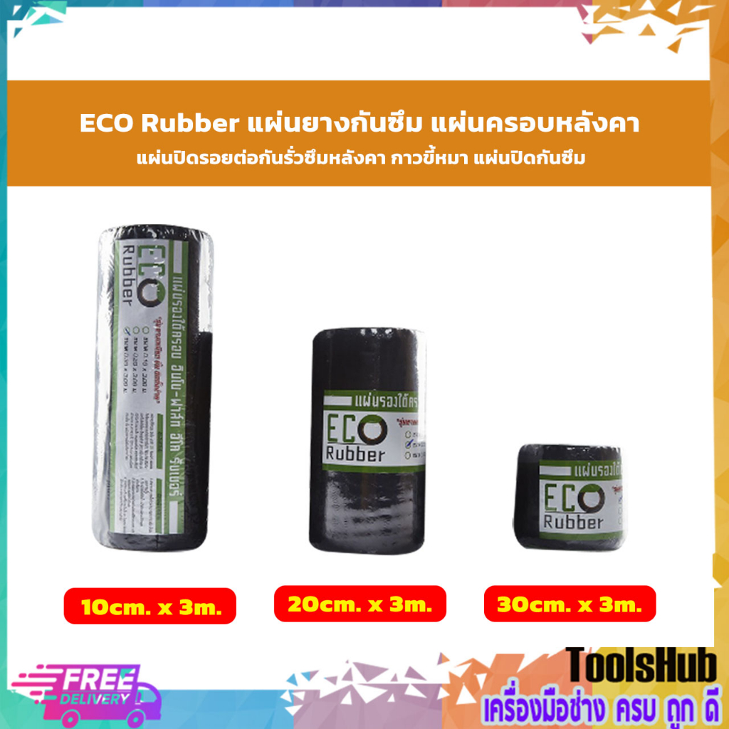ECO Ruber แผ่นยางกันซึม แผ่นติดรอยต่อกันรั่วซึมหลังคา กาวขี้หมา ขนาด 10-30 ซม. x 3 เมตร